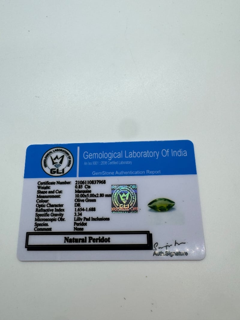 0.85 NATURAL PERIDOT MARQUISE CUT0.85, Olive Green, Marquise CutCondition: Good - Refer To Images584473+3