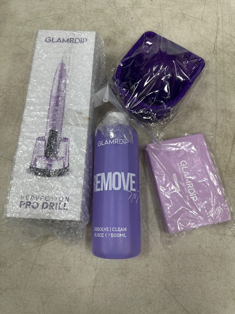 GlamrDip - Drill, 500ml dissolve solution, soak off nail tips, hand soak dishSold as lot