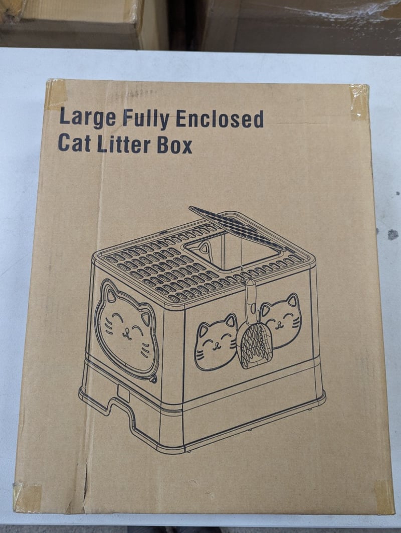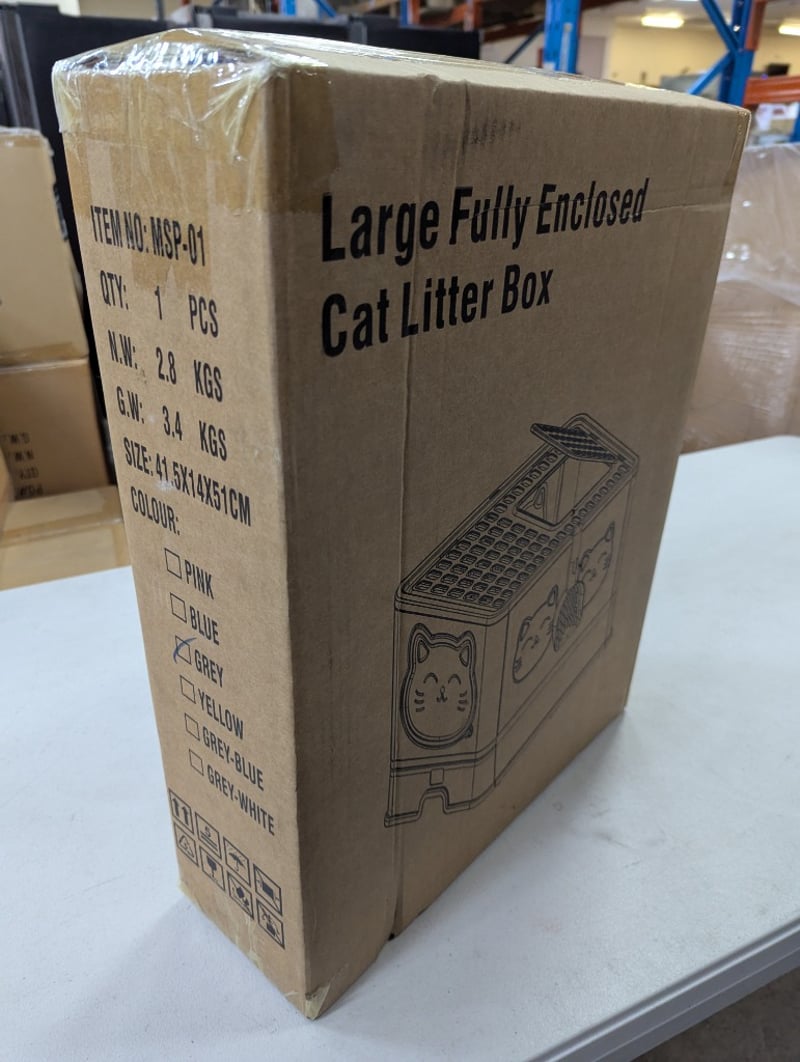 Large fully enclosed cat litter box, grey colour