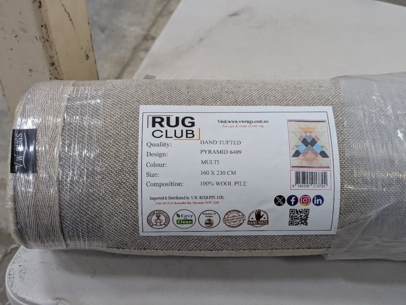 Hand tufted floor rug, pyramid design, 160cm x 230cm