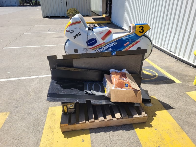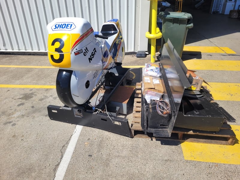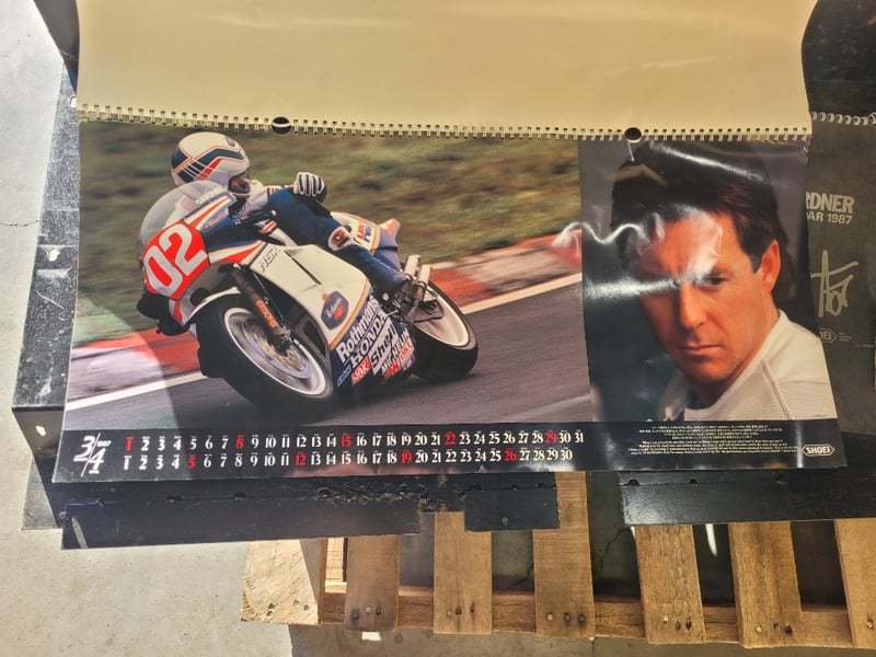 Description: Wayne Gardner motorcycle arcade machine, x2 calendars, Note: not working condition, untested, inspection recommended.