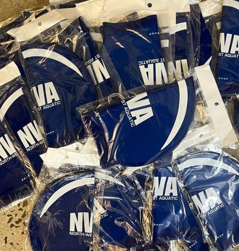 40 x Assorted Navy Swim Caps: One lot of 40 silicone swimming caps, fluro green in colour, branded 'NWA', one size fits all