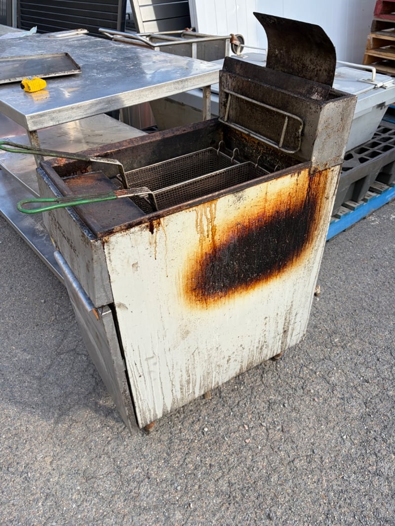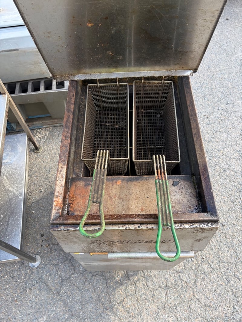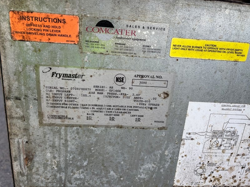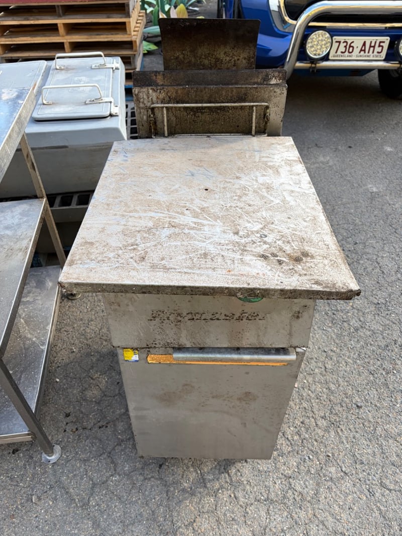 Gas deep fryer, x2 frying basket and lidModel: GF14SXSerial number: 0708FM0079Dimensions: H: 119cm W: 40.5cm D: 80cmSOLD AS LOT
