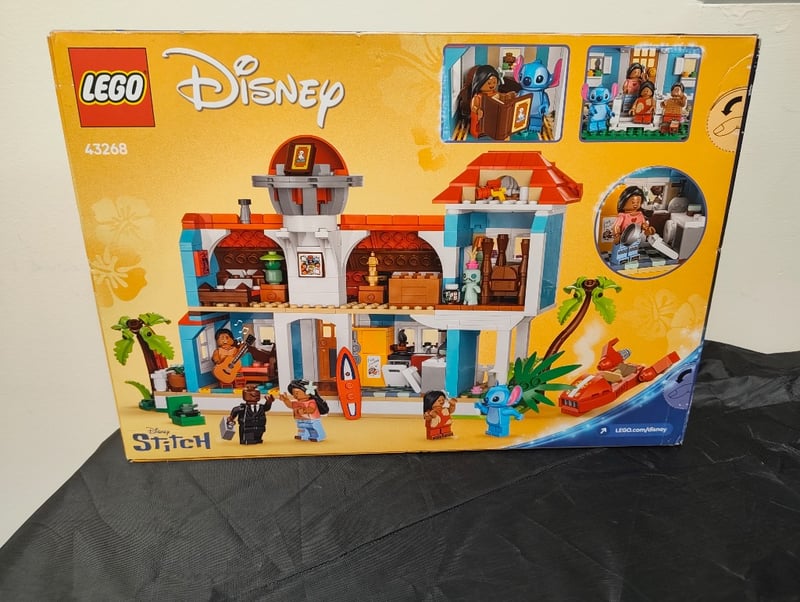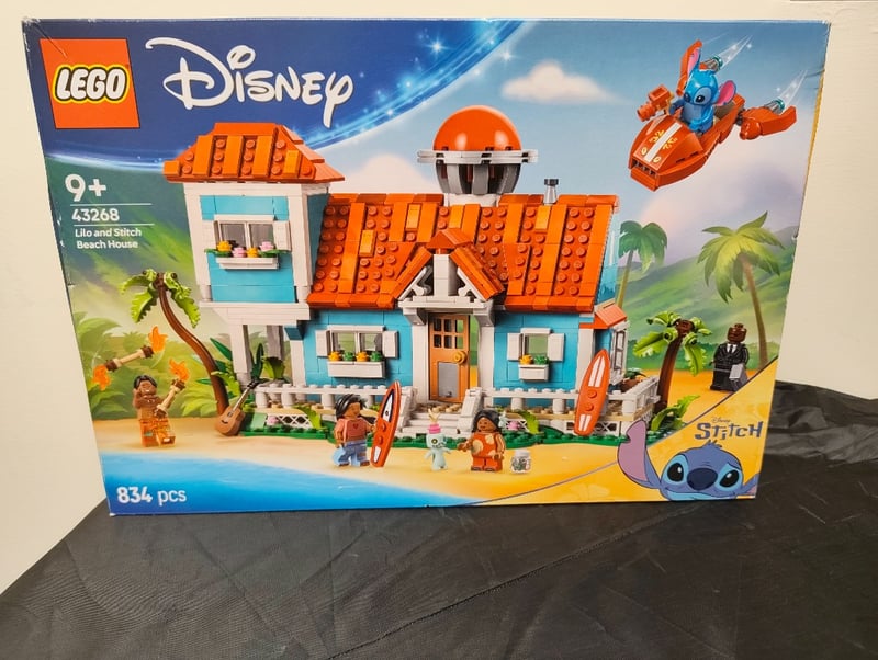 LEGO DISNEY LILO AND STITCH BEACH HOUSE SET 43268Lego Disney Set 43268 Featuring Lilo And Stitch Beach House With 834 Pieces, Includes Minifigures And Buildable Structures With Orange Tiled Roof, Blue Walls, And Tropical Accessories. Age 9+. Complete In Original Packaging With Visible Box Artwork Showing Beachside Setting And Character Details.Condition: Good - Refer To Images584522+233