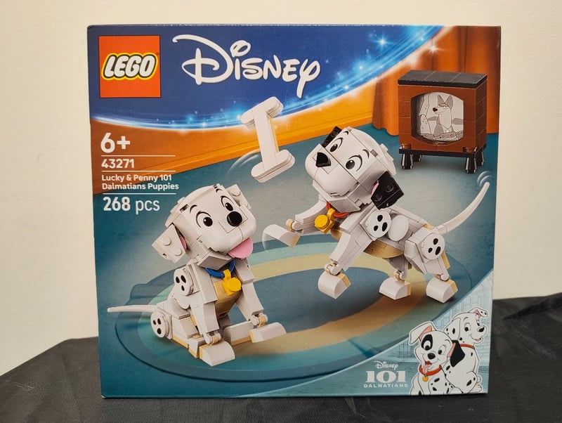 LEGO DISNEY 43271 LUCKY & PENNY 101 DALMATIANS PUPPIES SETLego Disney Set 43271 Featuring Buildable Dalmatian Puppy Figures Lucky And Penny From Disney'S 101 Dalmatians. This 268-Piece Construction Set Includes Two Articulated Dalmatian Puppies With Spotted Detailing, Golden Collar Accessories, And An Accompanying Vintage Television Set Displaying Classic Animation Imagery. The Set Demonstrates Precise Brick Engineering With Poseable Limbs And Expressive Facial Features. Includes Instructional Building Guide And Original Retail Packaging With ComprehenCondition: Good - Refer To Images584522+249
