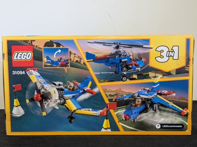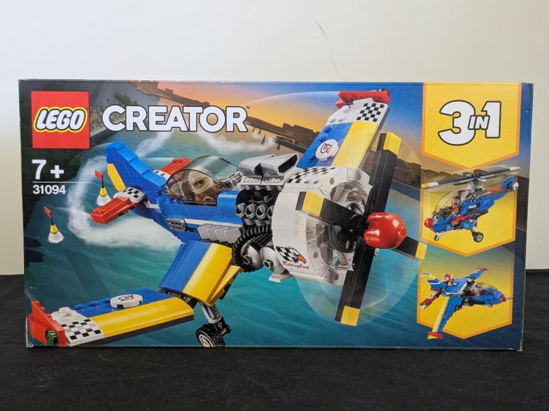 LEGO CREATOR 3-IN-1 RACE PLANE SET 31094Lego Creator 3-In-1 Set 31094 Featuring A Transformable Race Plane That Converts Into A Helicopter And Jet Aircraft. The Set Includes A Detailed Racing Plane With Blue, Yellow, And Red Colour Scheme, Functional Propellers, Landing Gear, And Cockpit Details. The 3-In-1 Configuration Allows Builders To Construct Three Distinct Aircraft Models From A Single Set. Suitable For Ages 7+. Boxed Set With Original Packaging Showing All Three Possible Build Configurations On The Reverse.Condition: Good - Refer To Images584522+179
