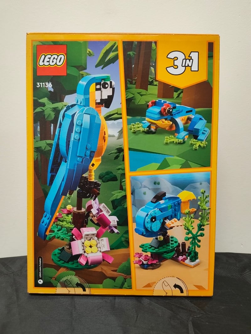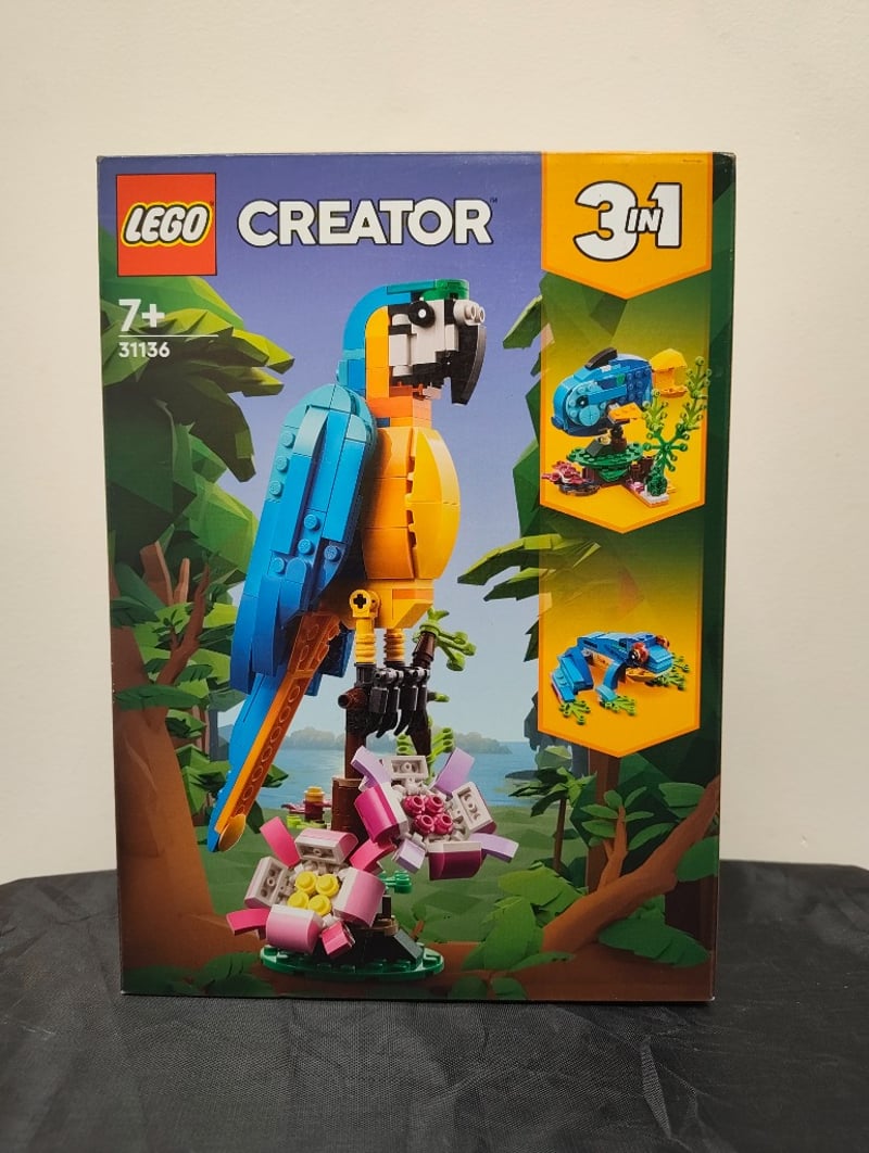 LEGO CREATOR 3-IN-1 PARROT SET #31136Lego Creator 3-In-1 Set #31136 Featuring A Buildable Blue And Orange Parrot With Articulated Wings, Poseable Legs, And Detailed Facial Features. Includes Alternative Builds For A Fish And Crocodile. Contains Colourful Botanical Elements Including Pink Flowers And Green Foliage. Age Recommendation 7+Condition: Good - Refer To Images584522+262