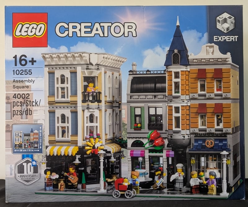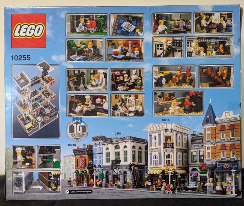 Lego Creator Expert Set 10255 Assembly Square Featuring 4002 Pieces. Includes Three Interconnected Modular Buildings With Detailed Architectural Elements, And Accessories. 10Th Anniversary Marking. Expert-Level Construction Set For Ages 16+.