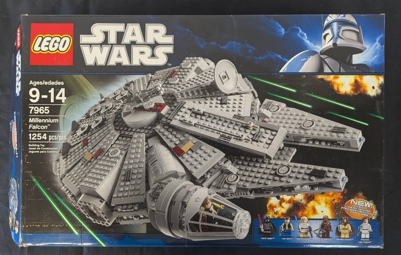 Lego Star Wars Set 7965 Millennium Falcon, 1254 Pieces, Ages 9-14. Iconic Spaceship Features Detailed Construction With Grey And Dark Grey Bricks, Includes Minifigures (Han Solo, Chewbacca, Leia, Luke Skywalker, And Others), Removable Cockpit Section, And Landing Gear