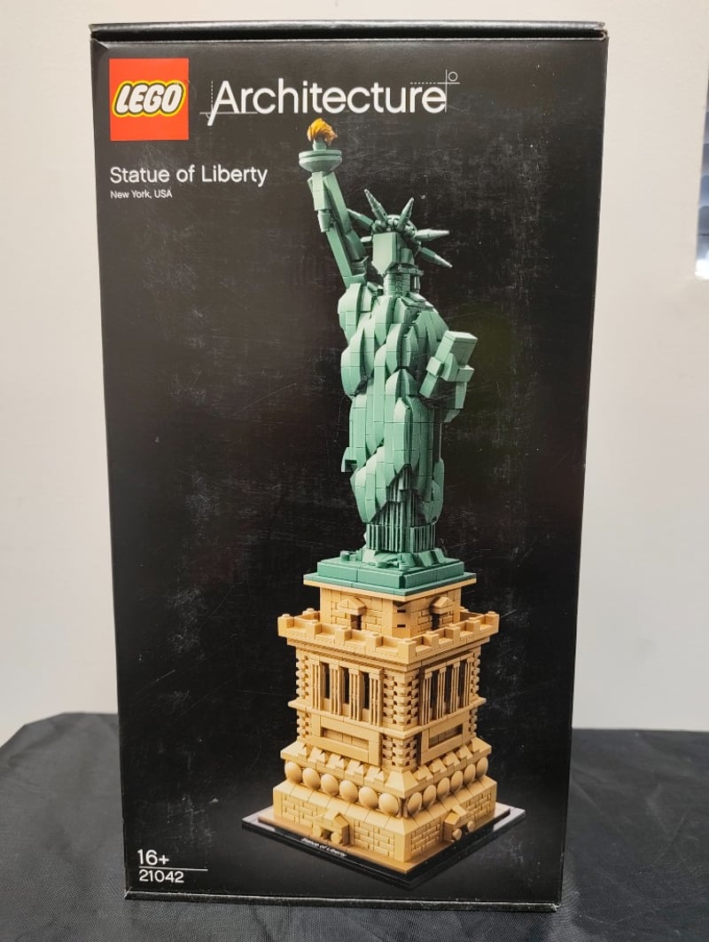 LEGO ARCHITECTURE STATUE OF LIBERTY SET 21042Item Size: Height: 53cmLego Architecture Statue Of Liberty (21042) Featuring A Detailed Minifigure-Scale Replica Of New York'S Iconic Monument. The Set Includes A Meticulously Crafted Green Patina Copper Statue With Torch And Crown, Mounted Upon A Tan Stone Pedestal Base With Architectural Detailing. Designed For Ages 16+, This Collectible Architectural Model Captures The Distinctive Neoclassical Elements Of The Original Structure.Condition: Good - Refer To Images584525+197