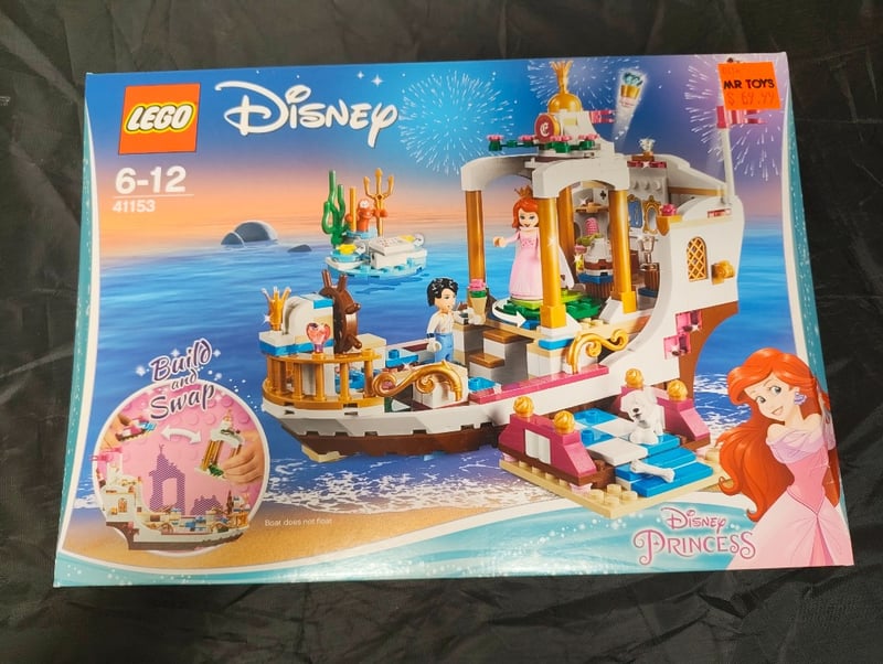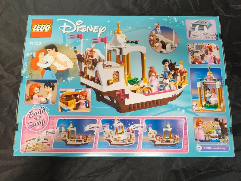 LEGO DISNEY PRINCESS ARIEL'S ROYAL CELEBRATION BOAT SET 41153Lego Disney Princess Set 41153 Featuring Ariel'S Royal Celebration Boat. This Buildable Set Includes A Detailed Multi-Level Ship With White And Brown Hull, Golden Accents, And Removable Cabin Sections. Includes Minifigures Of Princess Ariel And Prince Eric. Features "Build And Swap" Interactive Elements Allowing Customizable Configurations. The Set Showcases Intricate Architectural Detailing With Working Doors, Windows, And Decorative Elements. Suitable For Ages 6-12. Complete With Original PackCondition: Good - Refer To Images584525+134