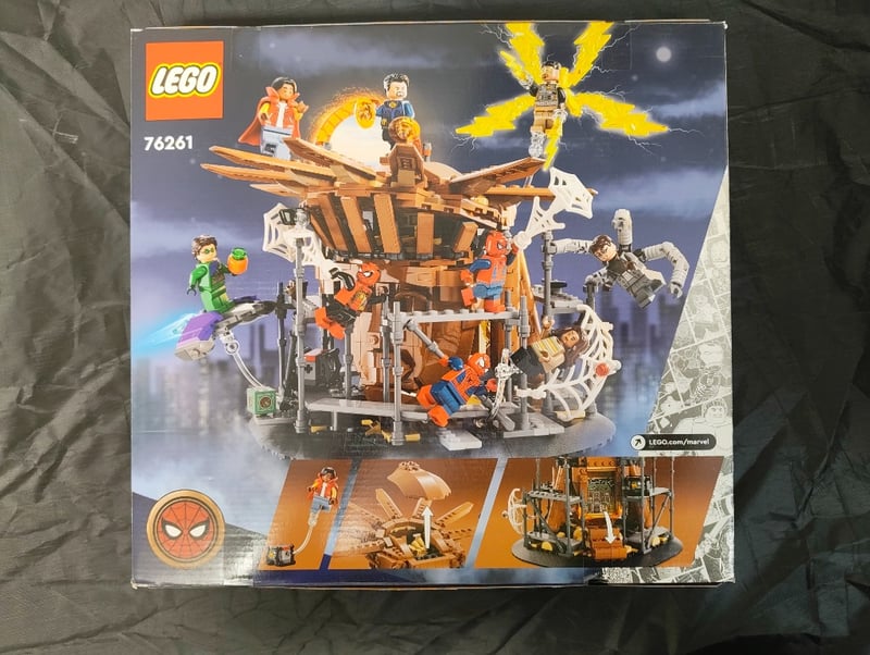 Lego Marvel Set 76261 Featuring Spider-Man Final Battle Playset With Brown And Tan Wooden-Styled Structure, Includes 9 Minifigures (Spider-Man Variants, Doctor Strange, Green Goblin, Electro, Doc Ock, And Others), Articulated Buildable Elements, Dynamic Lightning Effects Display Piece, And Detailed Architectural Components Reflecting The "No Way Home" Storyline. Age 10+ Complexity Level.