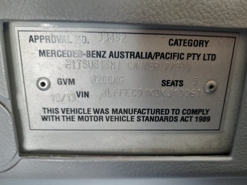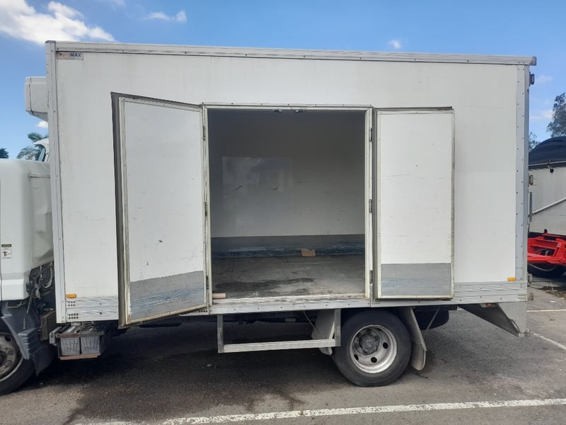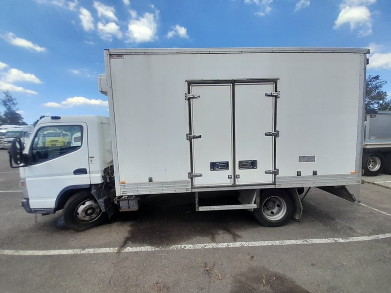 2013 Mitsubishi Fuso Canter 918 4x2 Refrigerated Trailer TruckYear: 2013Make: MitsubishiModel: Canter Series: 918Body: Refrigerated Trailer TruckSeats: 3Odometer Indicated: 249,748 kmsTransmission: 5 speed manualEngine: 4 cylinder dieselEngine Number: (as per PPSR)VIN: JLFFEC91KOKJ10061ENGINE: 4P10A87132 AS PER PPSRTray / Body Size: 4.0m x 2.5mGVM: 8,200 kgDescription: Non-running, top half of the engine is off and parts are on pallets in the rear of vehicle, fuel leak has also been detected along fuel line. Thermo-king cooling system with digital in cab temperature display, Key#D1