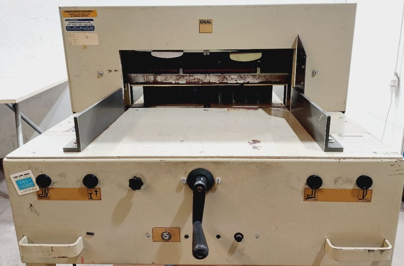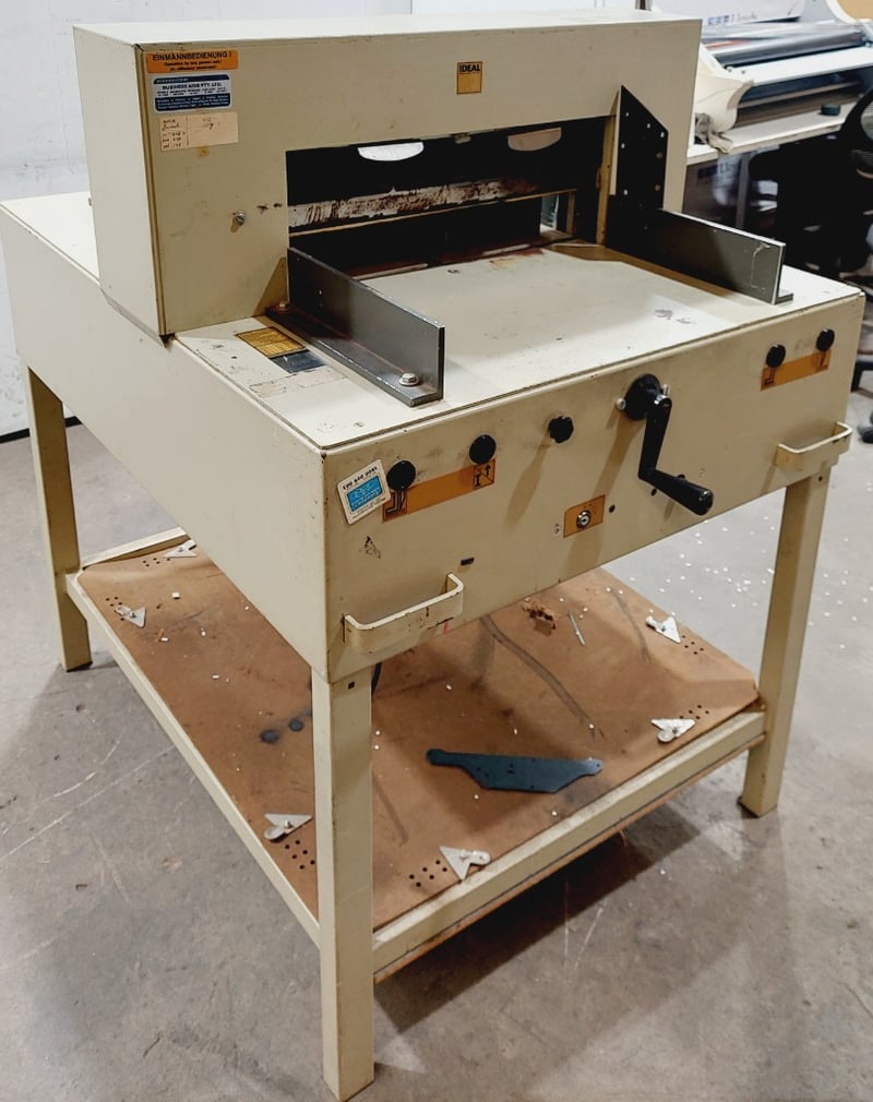 IDEAL-WERK industrial paper guillotine or cutter.Model: D7460Serial number: 374628Dimensions: 122cm H, 87cm W, 118cm LNote: inspection is highly recommended, item is untested, signs of wear, may be missing parts. Inspection highly recommended, item is untested, signs of wear, may be missing parts.
