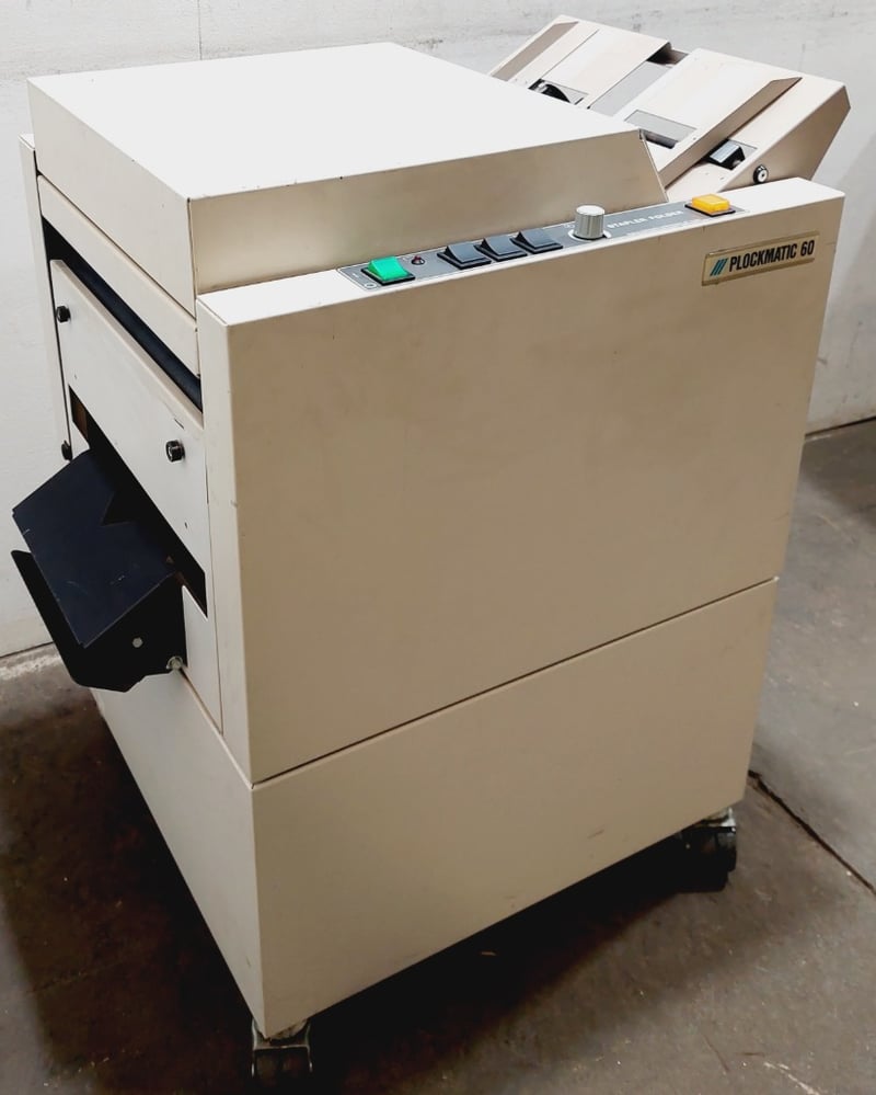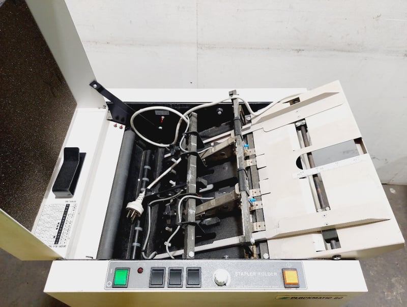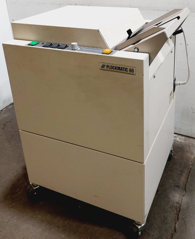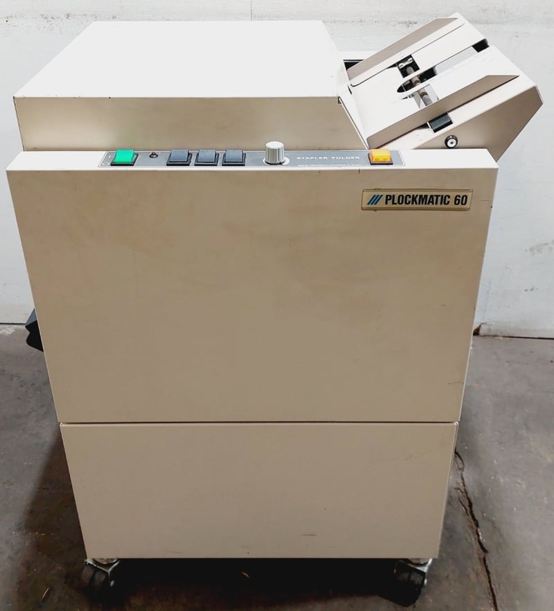 Plockmatic 60 booklet maker, a machine designed for staple and fold finishing in professional printing environments.