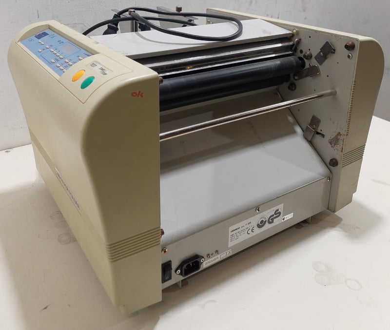Automatic paper folding machine, Uchida brand.