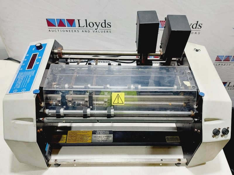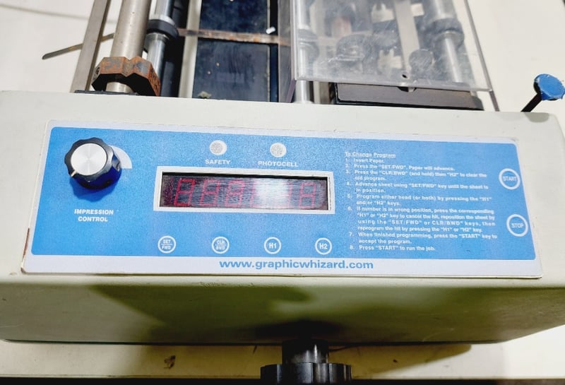 Graphic Whizard GW 6000 numbering, perforating, and scoring machine. Used for print finishing tasks like adding sequential numbers, creating perforated lines or scoring creases for folding.