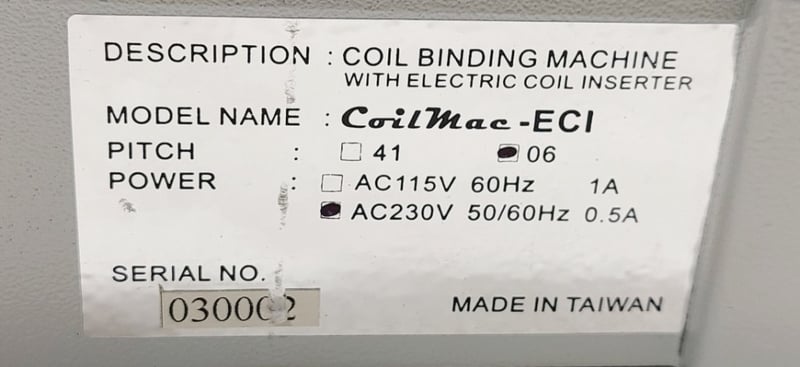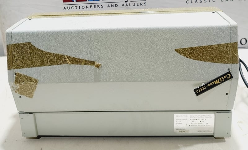 Akiles CoilMac-ECI Coil Binding Machine designed for plastic coil binding.Dimensions: 42cm L, 40cm W, 25cm HNote: inspection is highly recommended, item is untested, signs of wear, may be missing parts. Inspection highly recommended, item is untested, signs of wear, may be missing parts.