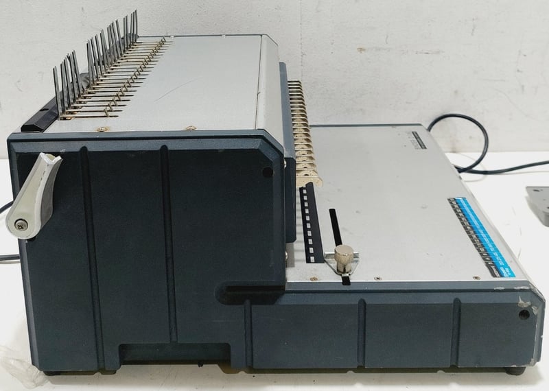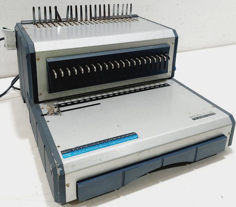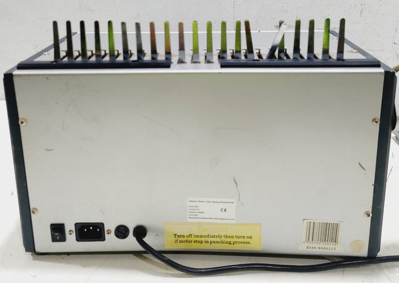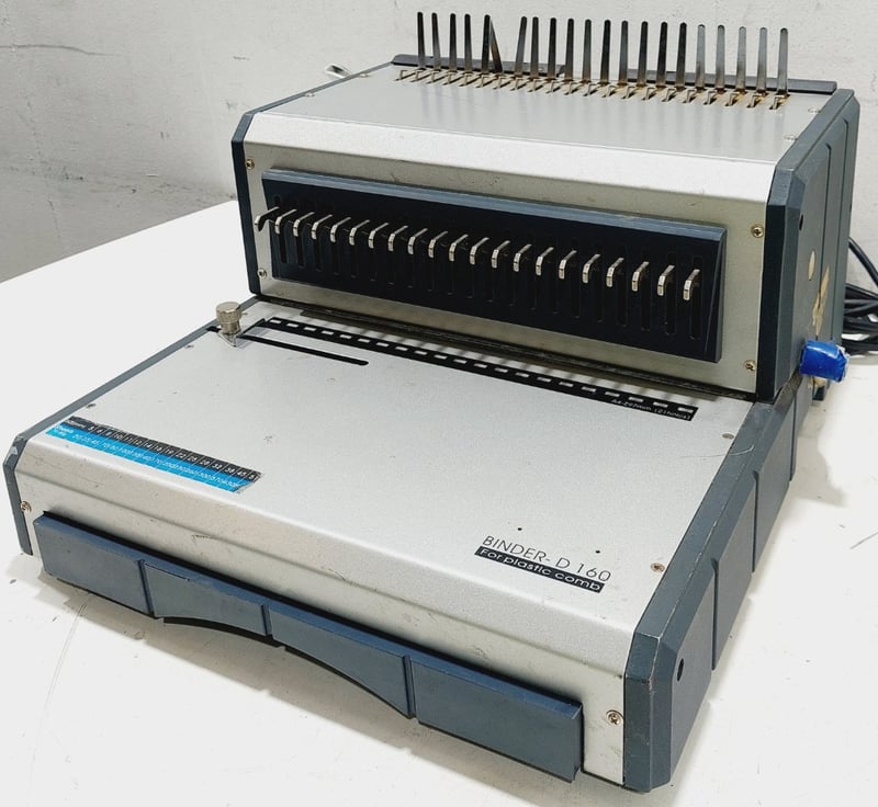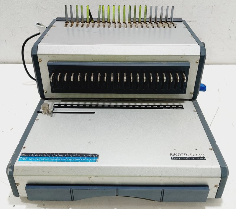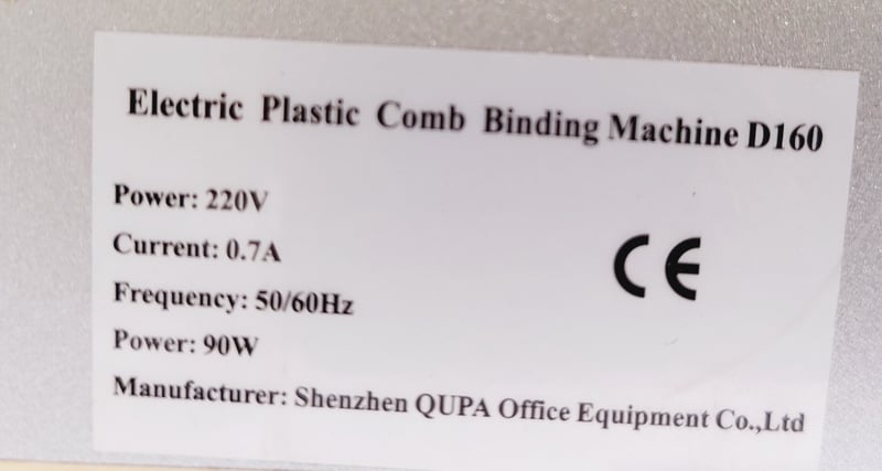 Qupa D160 Electric Plastic Comb Binding Machine. Designed for easy document alignment and effortless punching to create bound presentations.Dimensions: 40cm L, 43cm W, 26cm HNote: inspection is highly recommended, item is untested, signs of wear, may be missing parts. Inspection highly recommended, item is untested, signs of wear, may be missing parts.