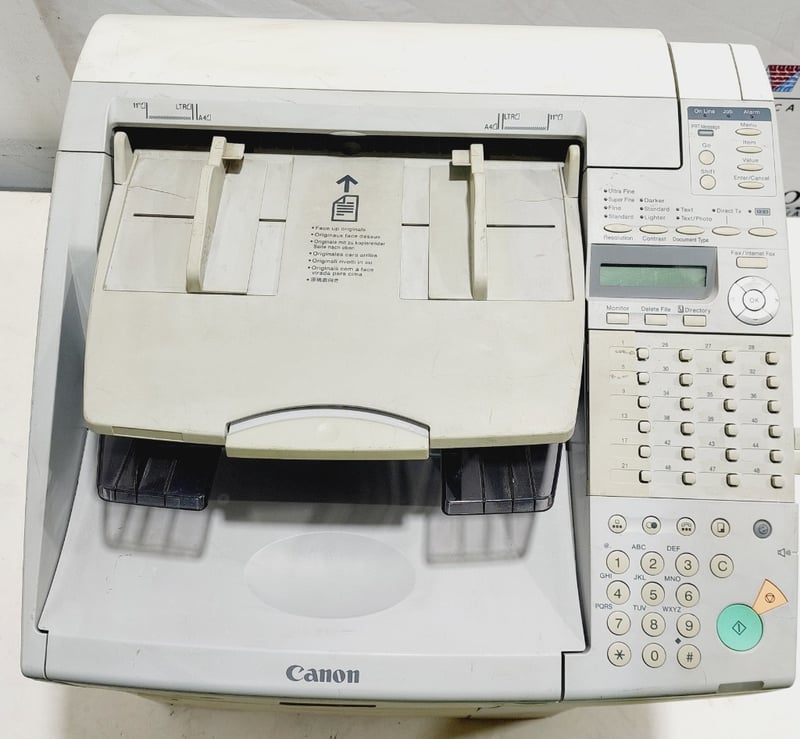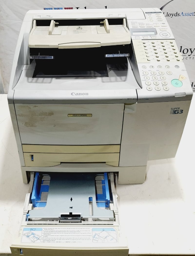 Canon FAX-L2000 laser fax machine, commonly used as a multifunction device for printing and scanning in office environments.