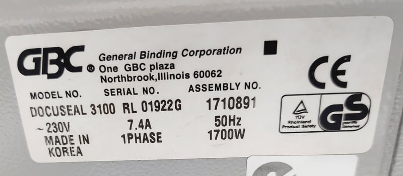GBC DocuSeal 3100 hot and cold laminator.Dimensions: 102cm L, 52cm W, 35cm HNote: inspection is highly recommended, item is untested, signs of wear, may be missing parts. Inspection highly recommended, item is untested, signs of wear, may be missing parts.