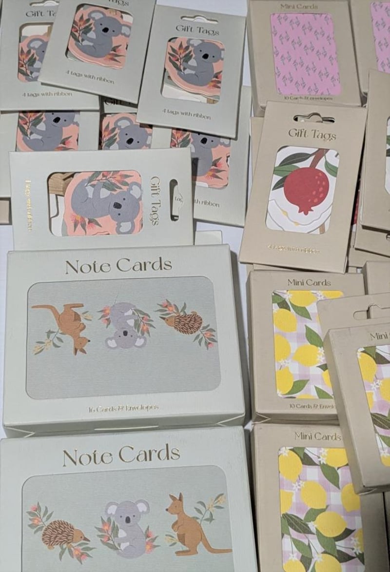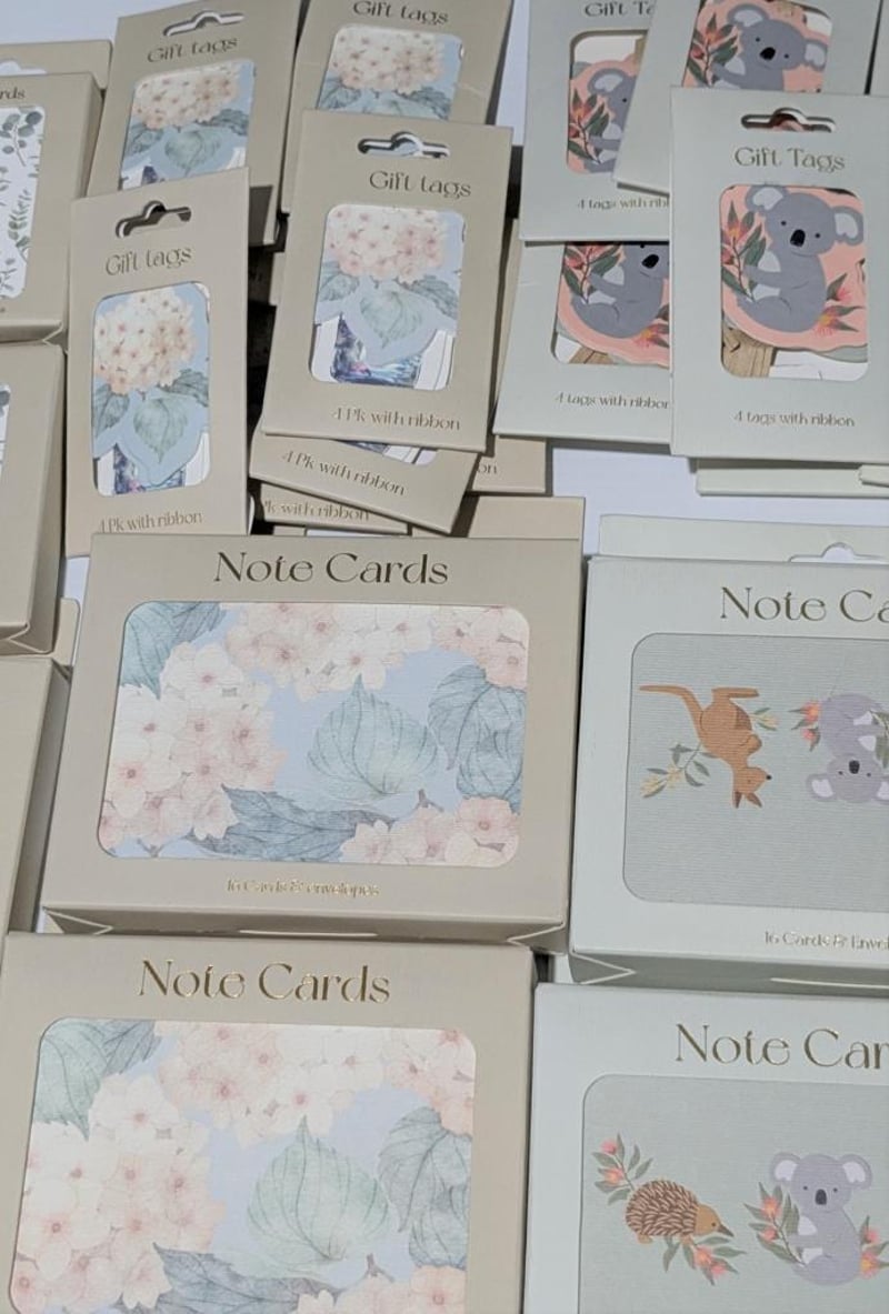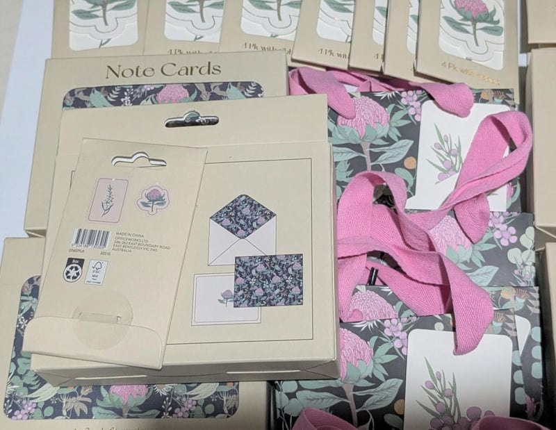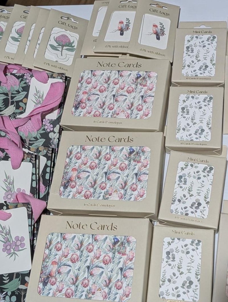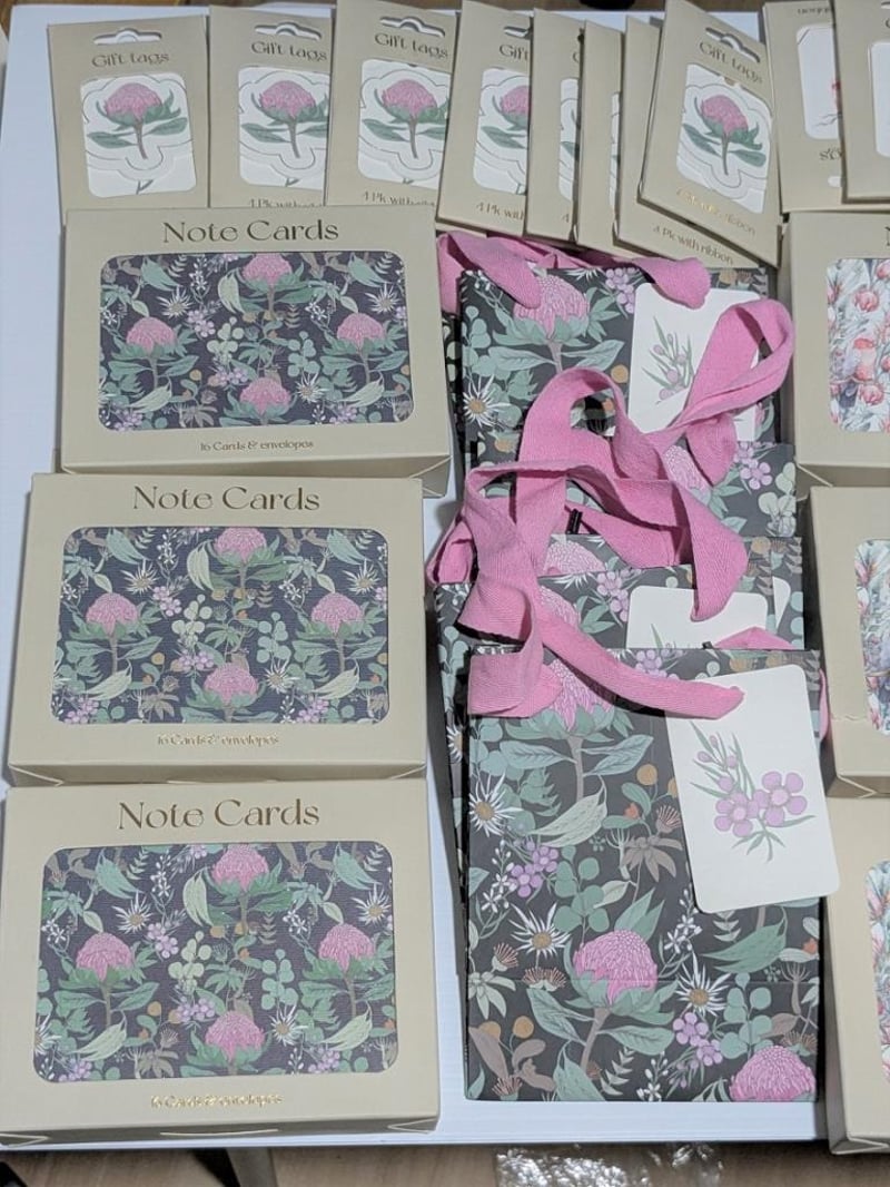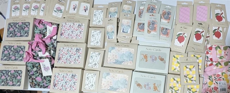 Australian flora & fauna themed $300 value gift bags, note cards, mini cards & gift tags, sold as lot