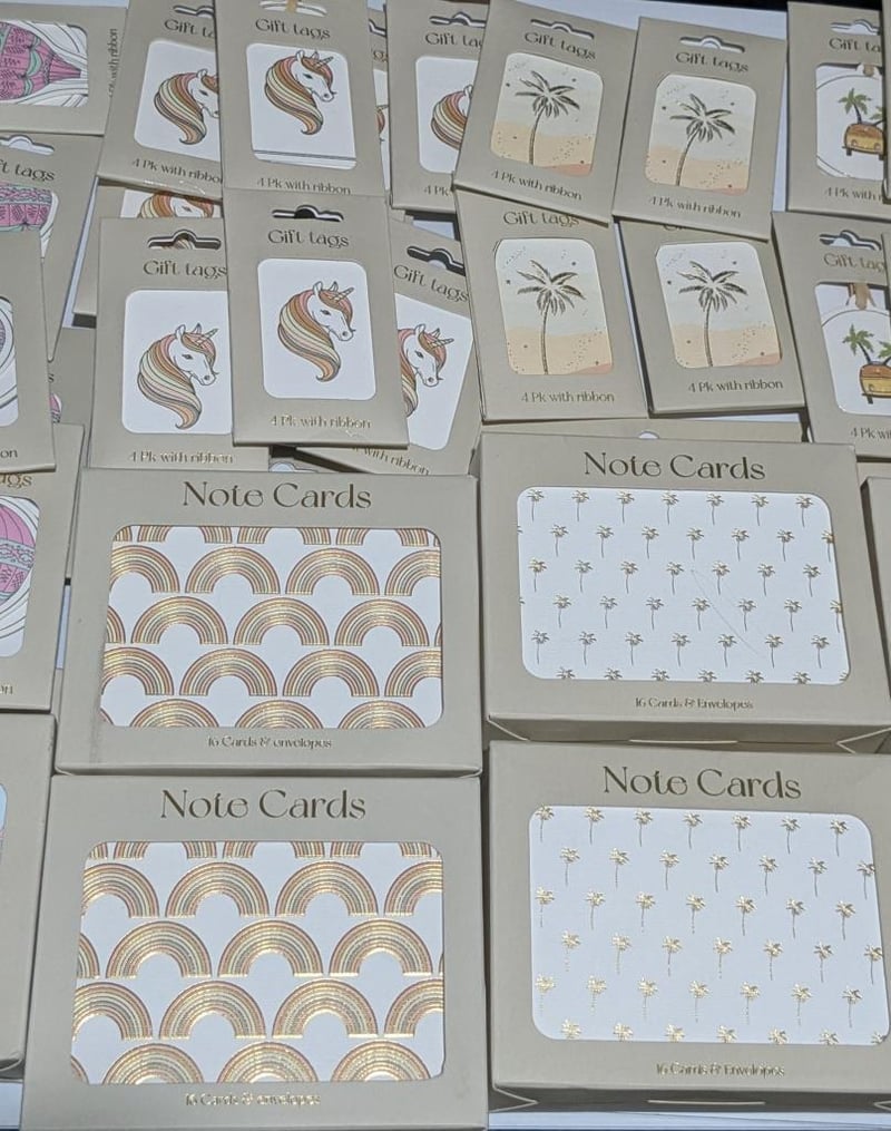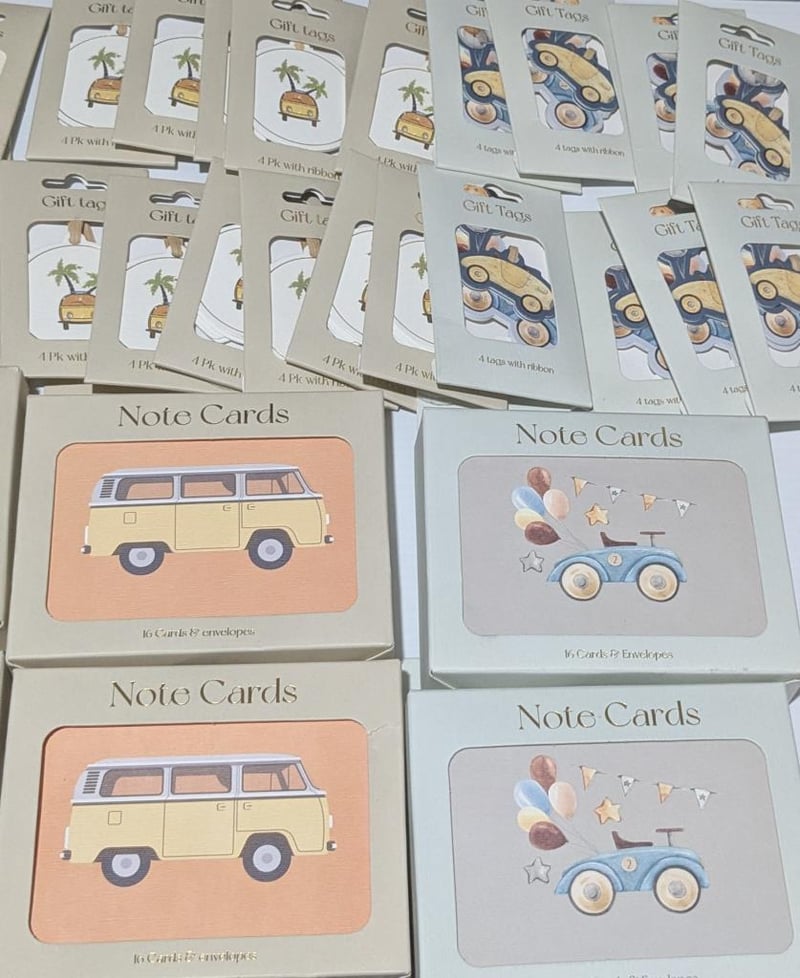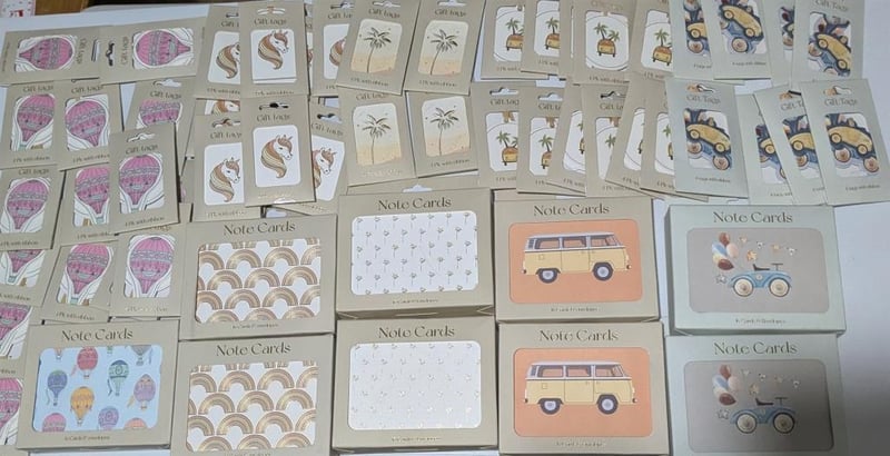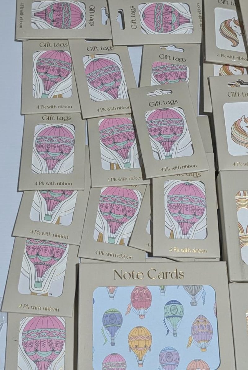 Hot air balloon, car & unicorn themed $300 value note tags & gift tags, sold as lot