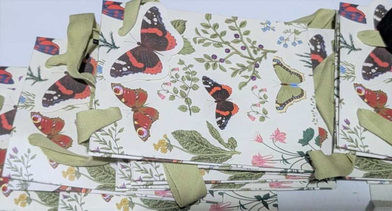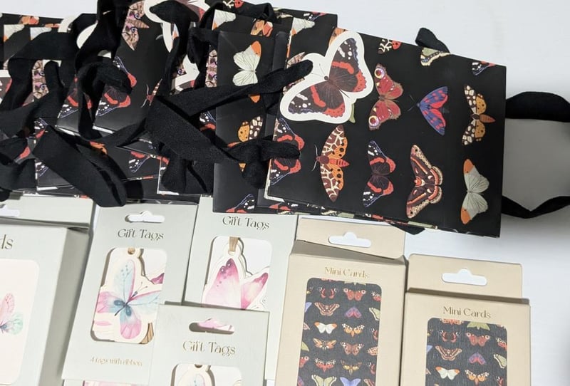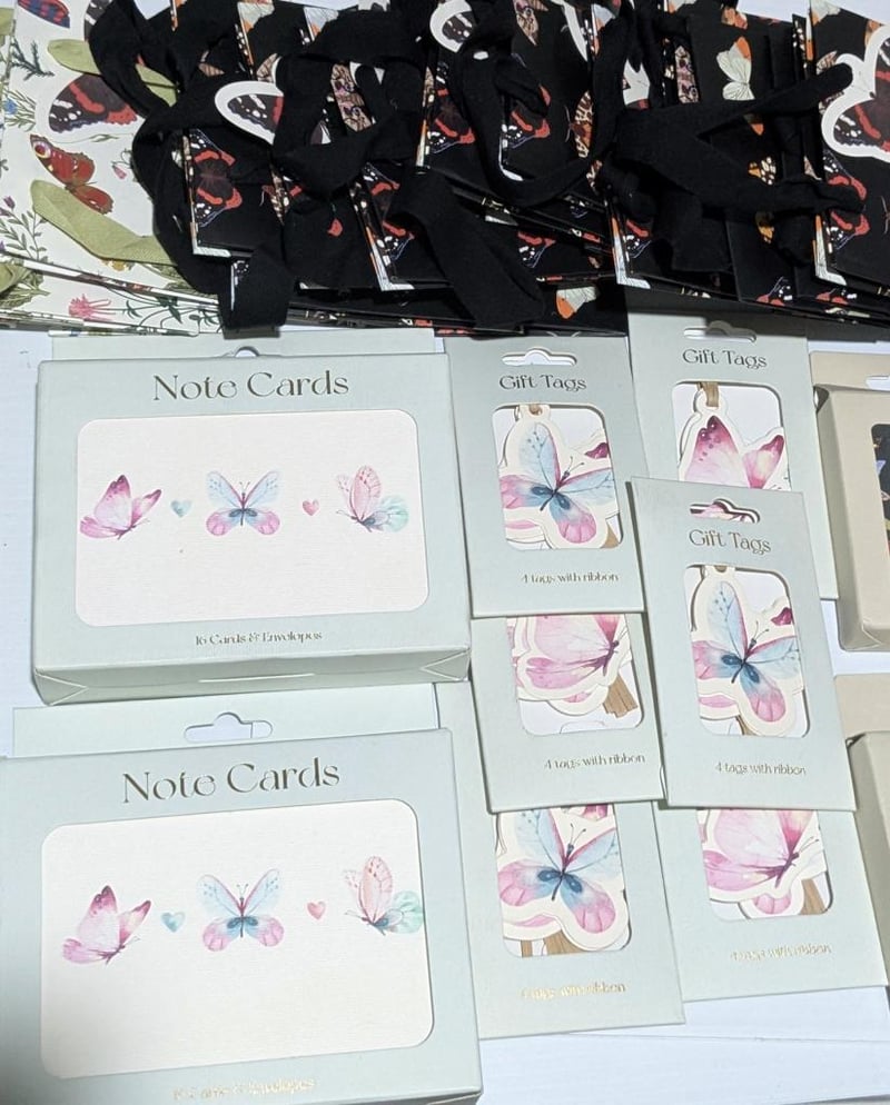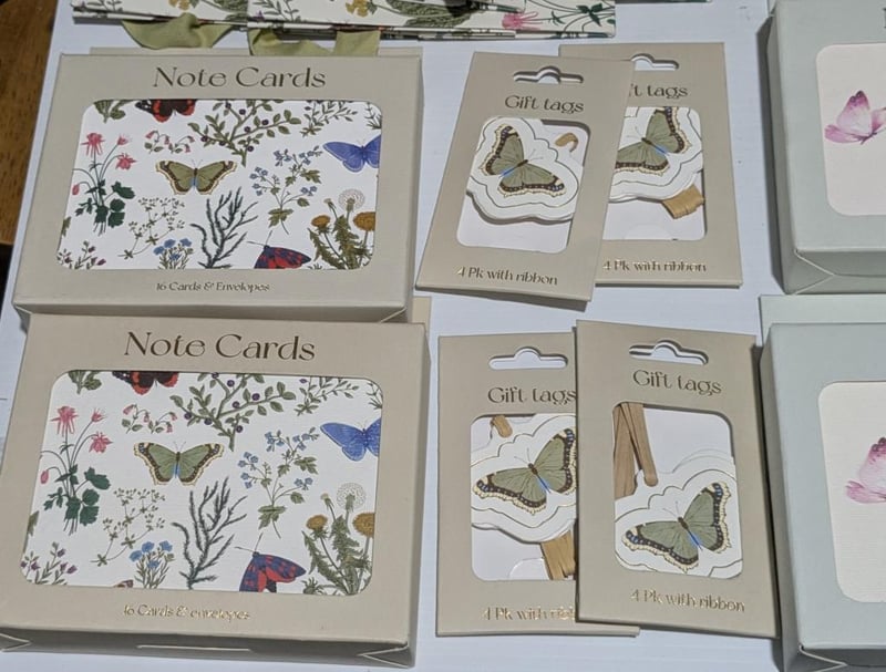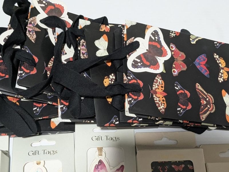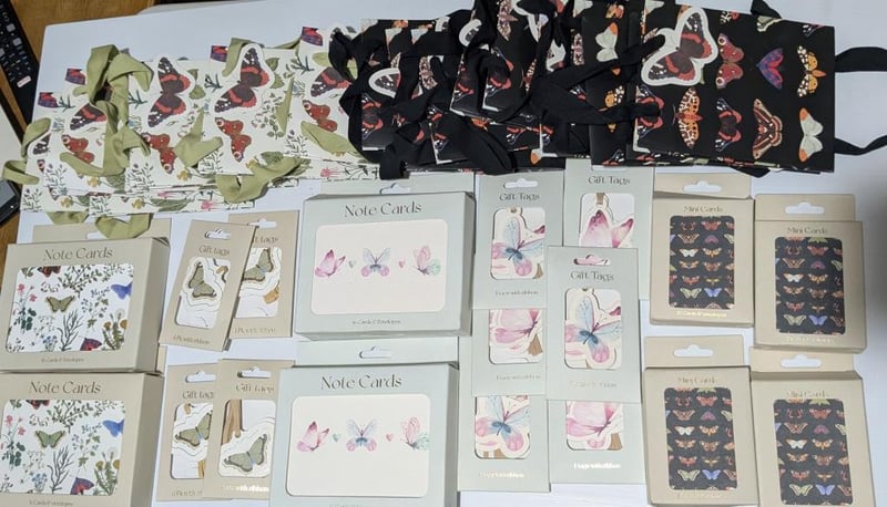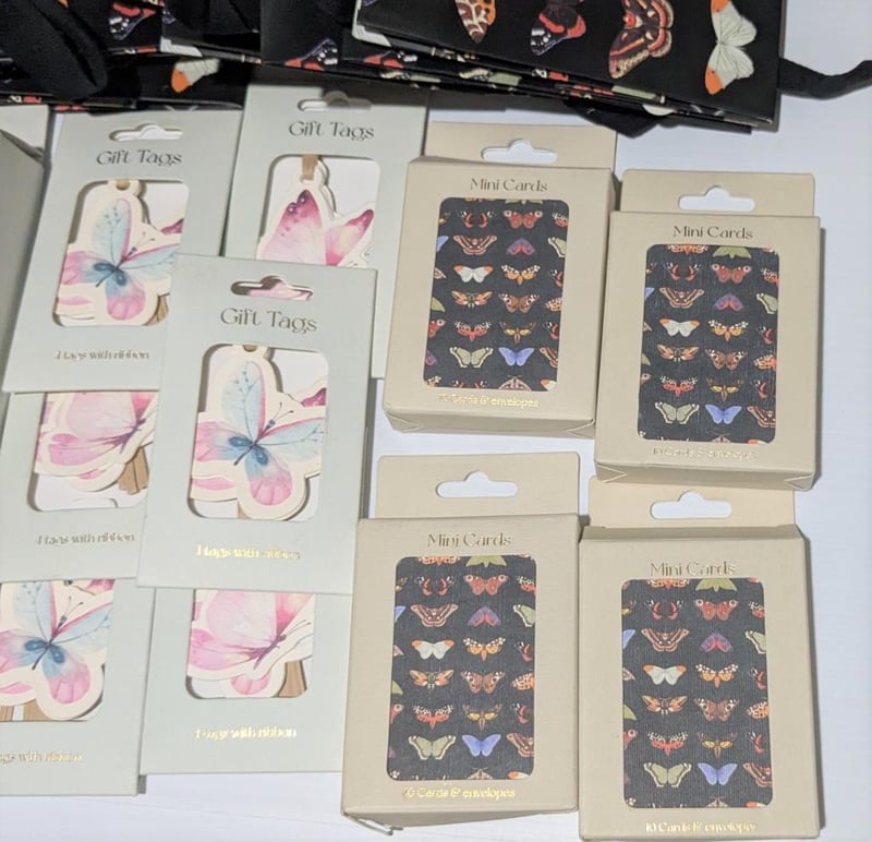 Butterfly themed $200 value note cards, mini cards, gift tags & gift bags, sold as lot