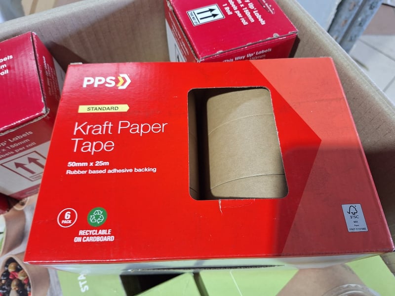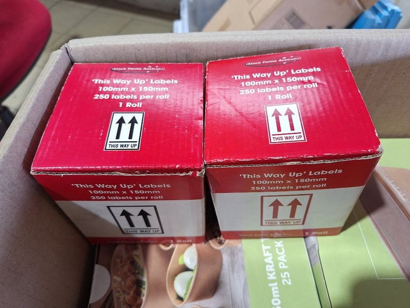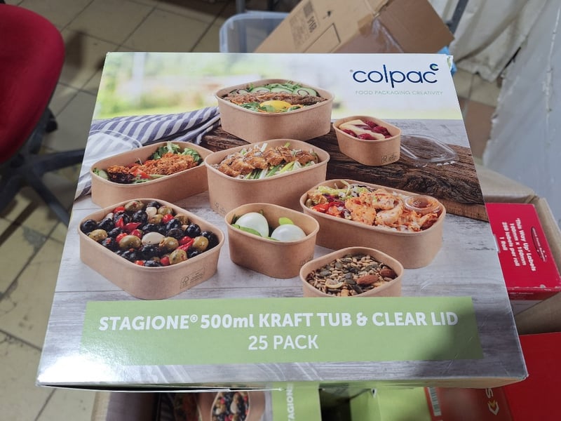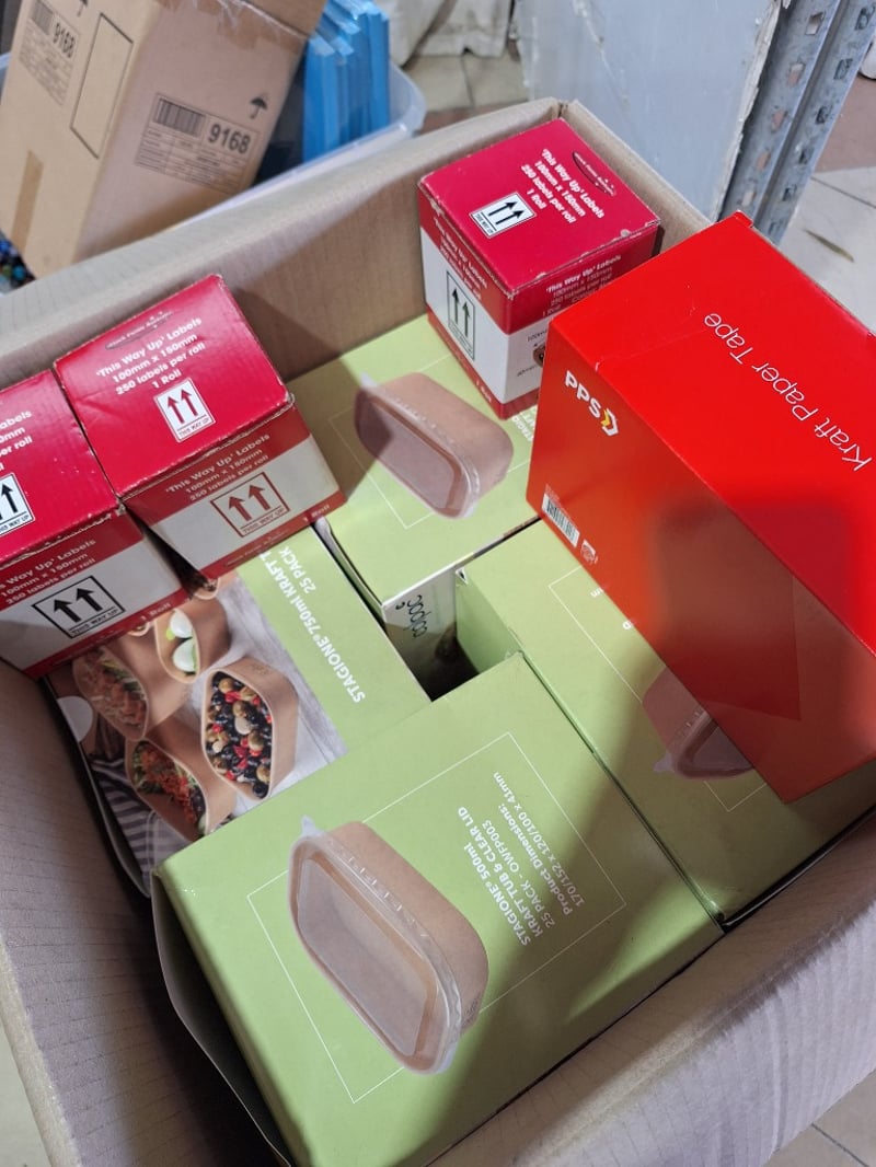 Assorted Lot Includes Multiple Stagione Kraft Tub and Lid 500ml 25 packs, Labels & Kraft Paper TapeSOLD AS LOT