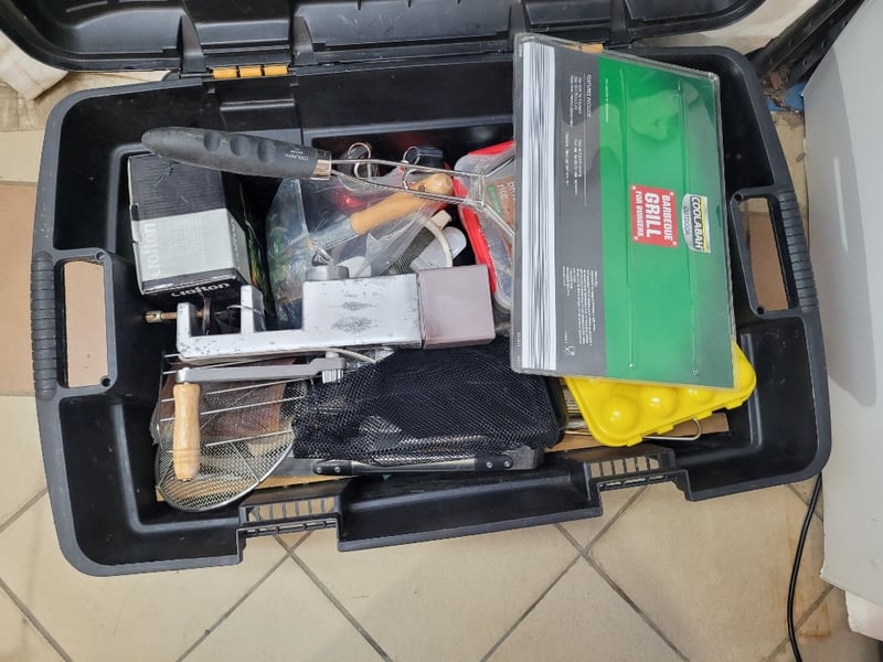 Assorted Kitchen Cooking & BBQ Items Dimensions: L85 x W55 x H40cm SOLD AS LOT