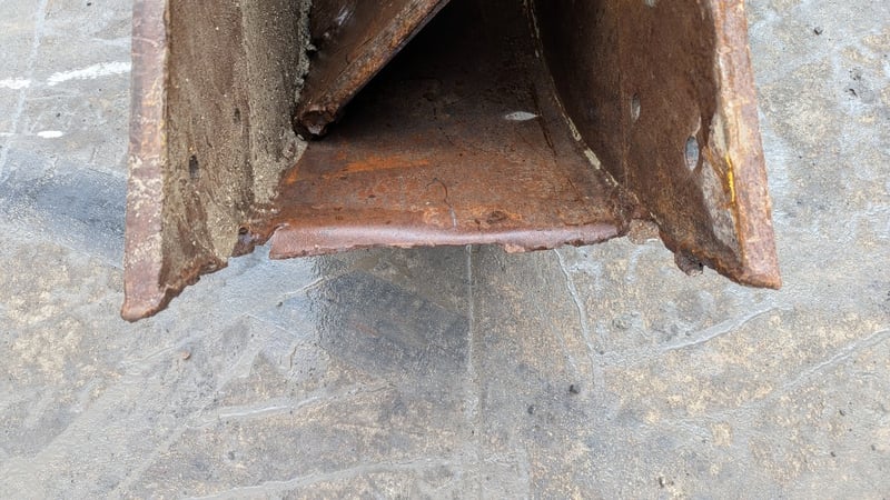 Excavator Bucket Make: Case Vic Type: Rock Bucket Teeth: 3 Pin Size: 9 cm BTE: 32.5 cm Bucked size: approx Width: 53 cm Depth: 143 cm Note: Broken Tooth Plate (Refur to Photos)
