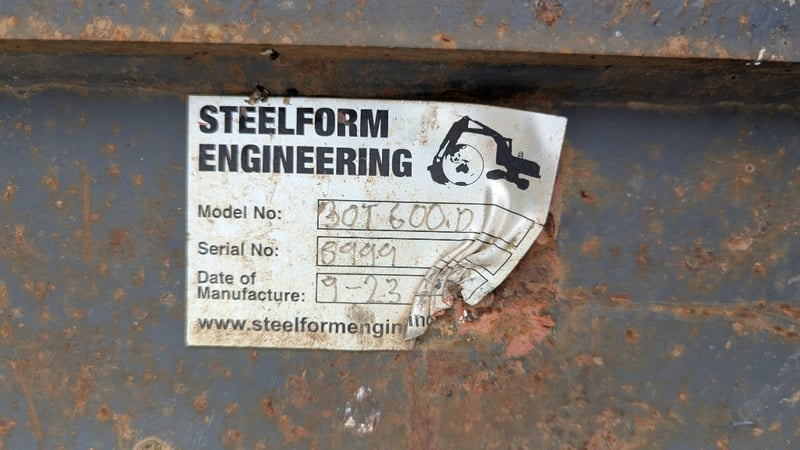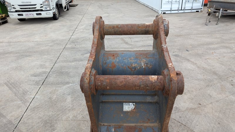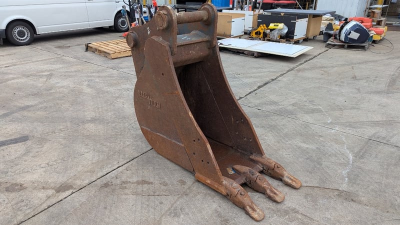 Excavator Bucket Make: Steel Form Type: 30T600D Teeth: 3 Pin Size: 9 cm BTE: 40.5 cm Bucked size: approx Width: 60 cm Depth: 160 cm