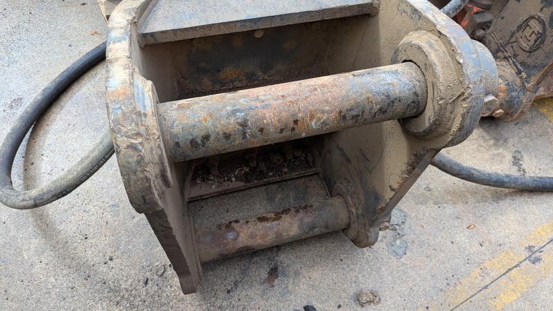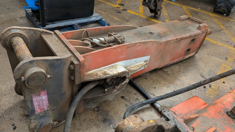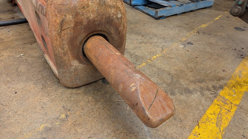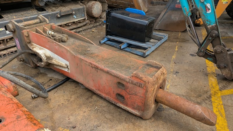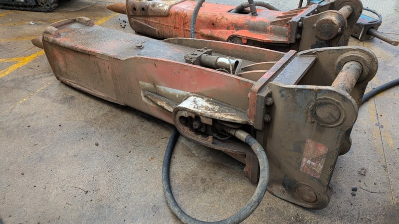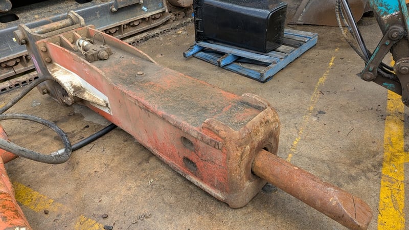 Rock Breaker Make: TRS Type: Rock Breaker with Hydraulic Hoses Teeth: 1 Pin Size: 9 cm BTE: 41 cm Dimensions: 310cm(H)×70cm(W)×80cm(D)