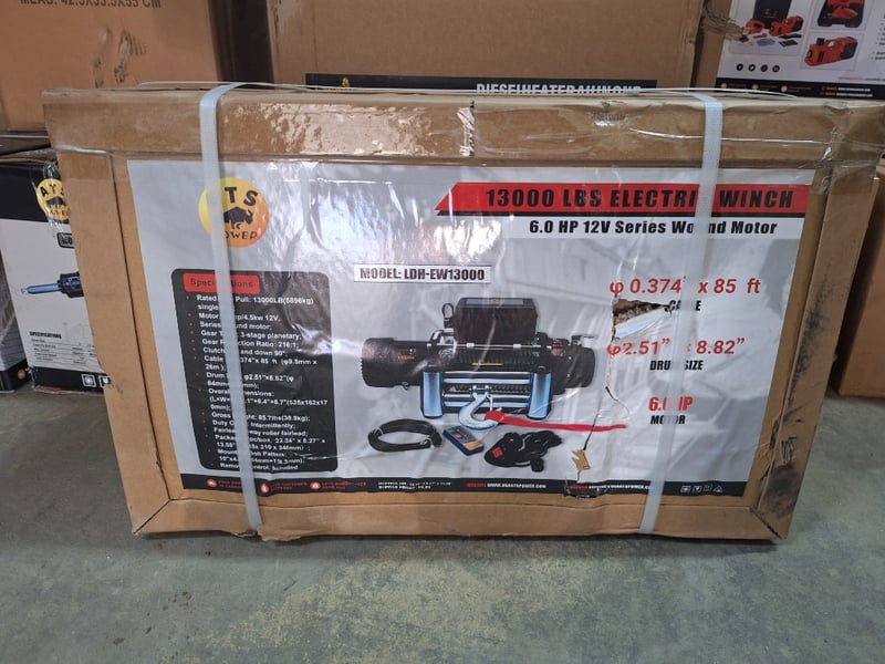 LFACTORY DIRECT ** Unused 2026 Landhero, Electric winch - PL-P13000Rated Line Pull: 13000LB single- lineMotor: 6.0hp/ 4.5kw 12V,Series Wound motorGear Train: 3-stage planetaryGear Reduction Ratio: 216:1Clutch: Up and down 90°Cable :p9.5mmx 26mDrum Size: f2.51"x 8.82"Overall Dimensions: (LxWxH) 21.1"x6.4"x6.7"Duty Cycle: IntermittentlyFairlead: 4- way roller fairleadMounting Bolt Pattern: 10"'x 4.5"Size Approx: 22.3" x 8.3"x 13.6"Weight Approx: 40 kgPlease note: minor scuffs and marks may be evident For more information Contact King Cheung on 0477987576 or [email protected] *** PLEASE NOTE Collections must occur within 7 days of Auction Ending*** Note: OEM images and VIDEOS shown are for illustration purposes only, and used as a guide only, inspections highly recommended. ZTCU4518405