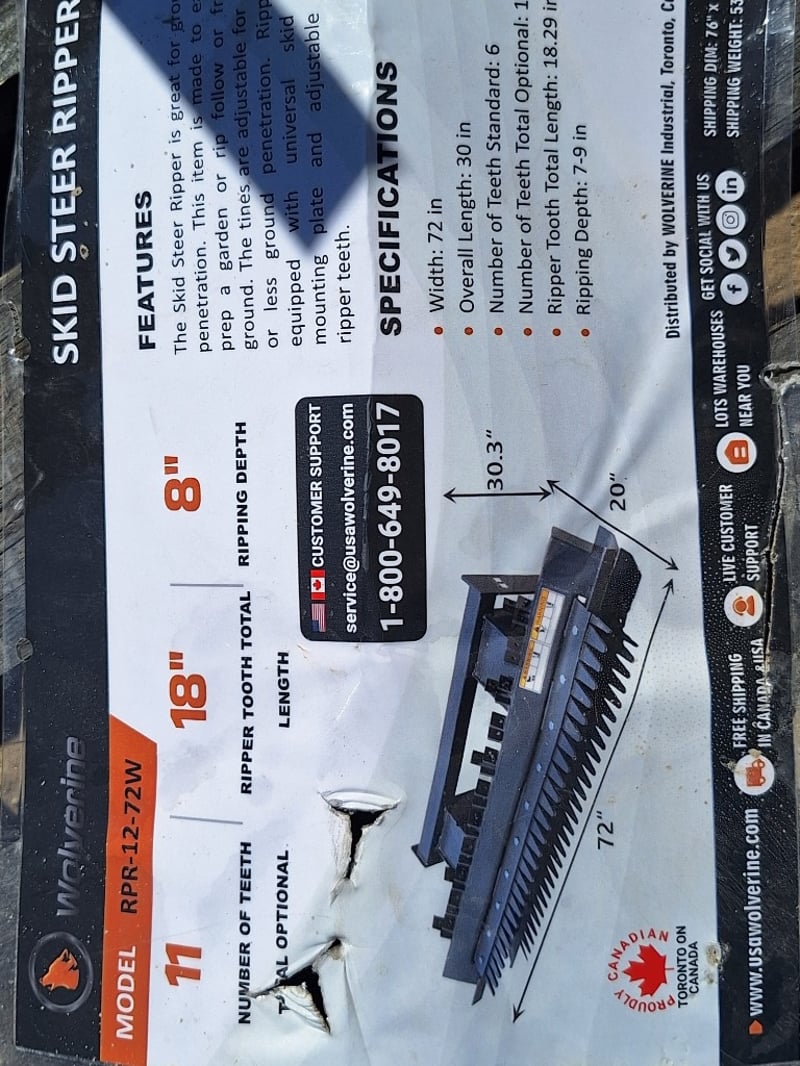 FACTORY DIRECT ** Unused 2026 WOLVERINE, Skid Steer Ripper - RPR-12-72W