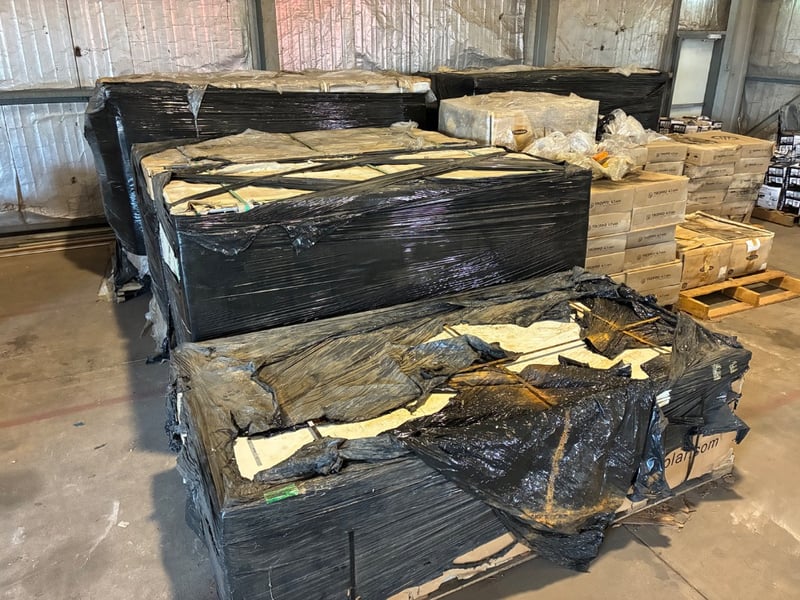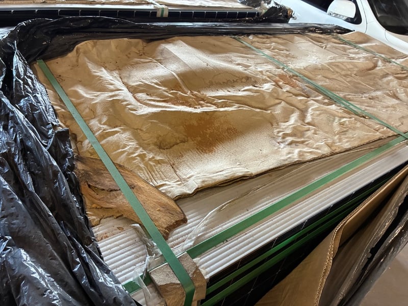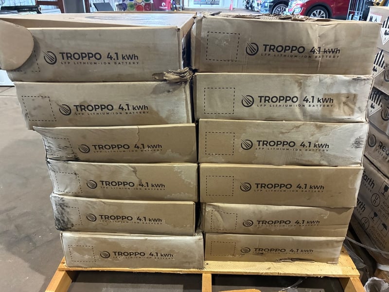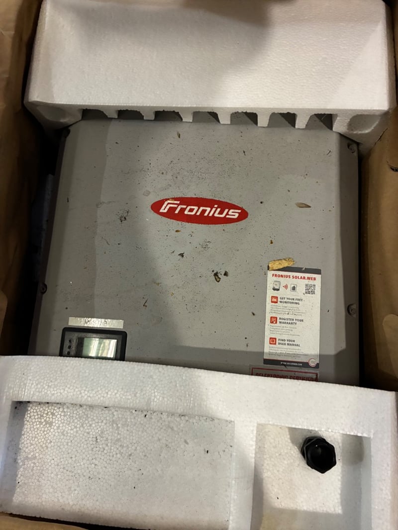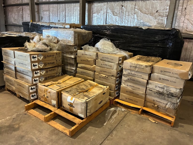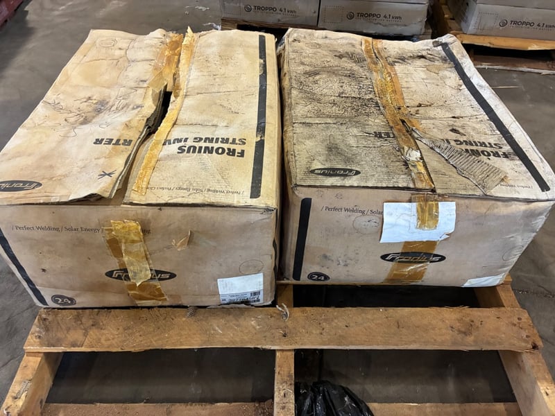 The systems remain in their original packaging; however, the external packaging has been subject to weather exposure and is visibly damaged.