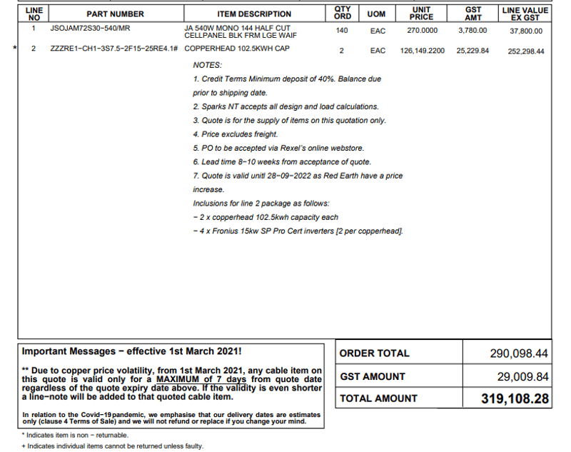 Includes associated batteries, inverters, and Copperhead enclosure systems