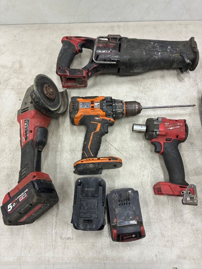 Assorted power tools and accessories, including power drill, batteries and more SOLD AS LOT