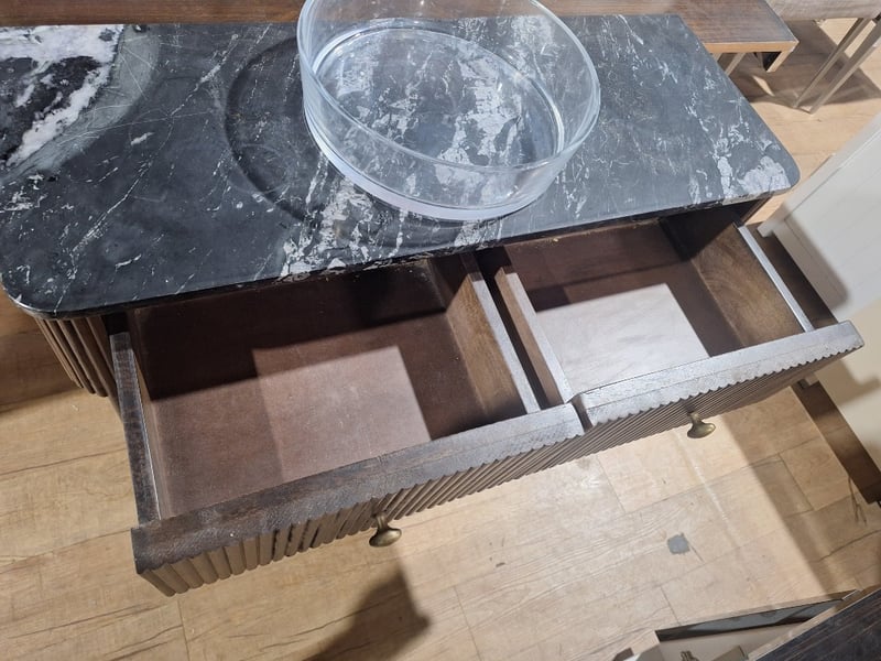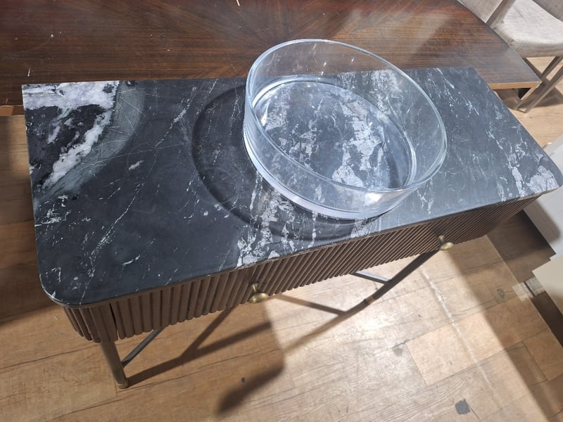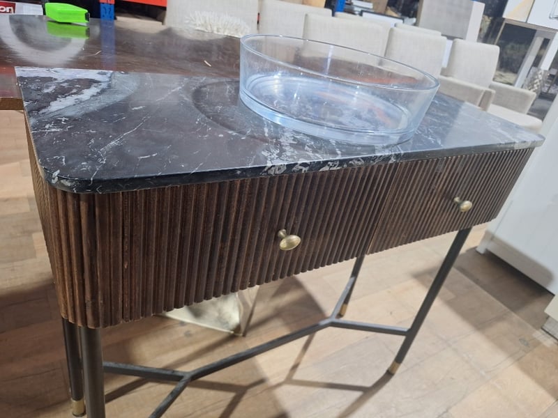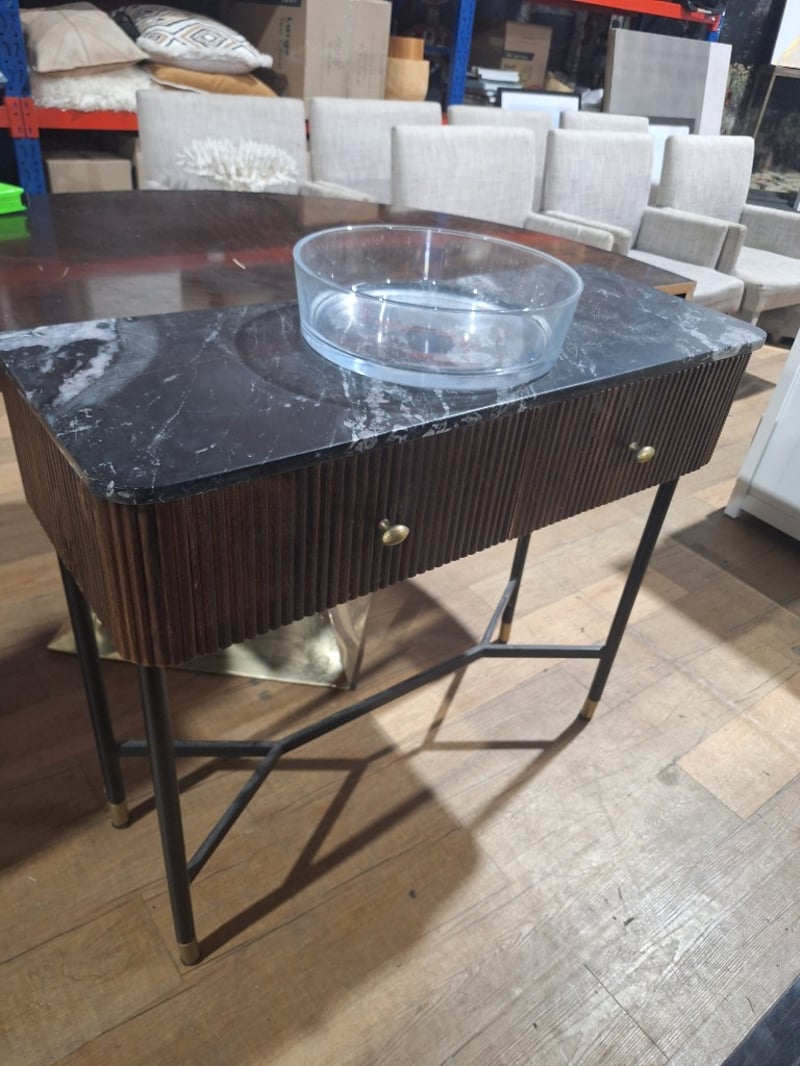 Hall Table With Glass Vase, Timber Style, Black & Brown FinishDimensions H:81cm W:91cm D:35cm