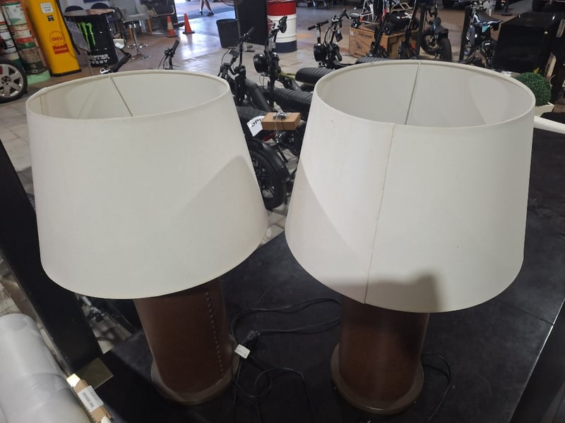 Pair Of Table Lamps, Brown Finish Dimensions H:83cm W:45cm D:45cmSOLD AS LOT