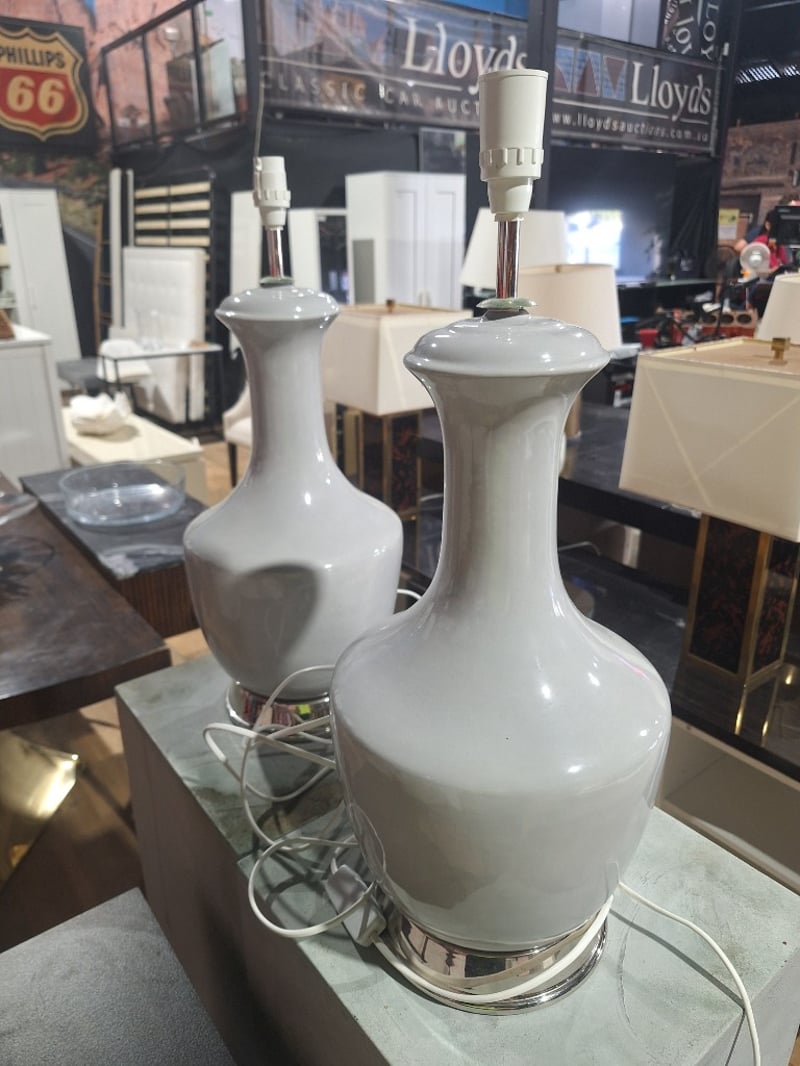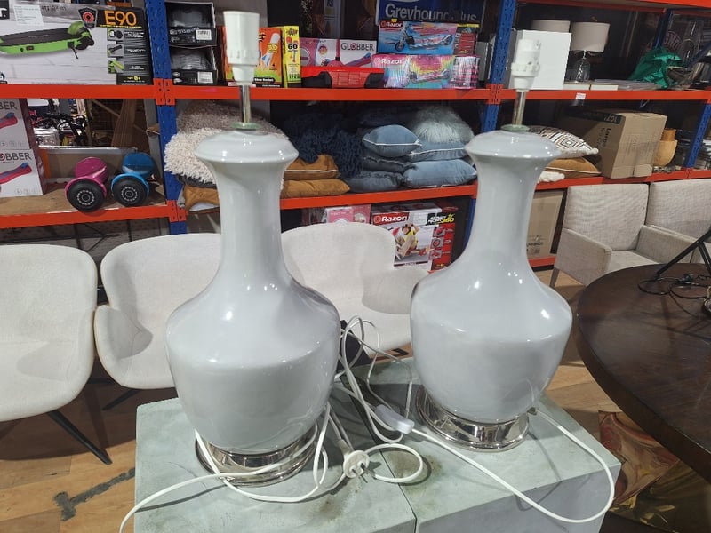 Pair Of Table Lamps, Grey Finish