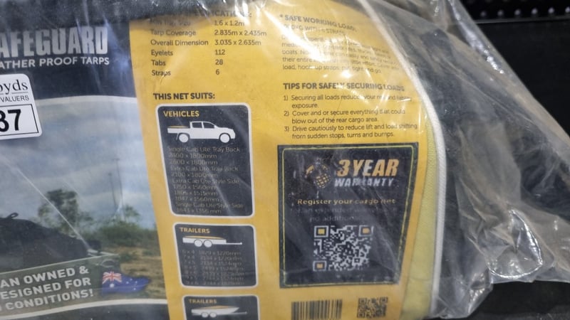 Rrp $371.80 SafeGuard Cargo Net, 3m x 2.6mLocation: South Lismore, NSW Inspection: Wednesday 22nd of April, 9am to 3pm Collections: STRICTLY Tuesday the 28th April to Friday 1st May