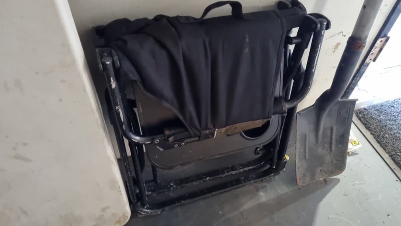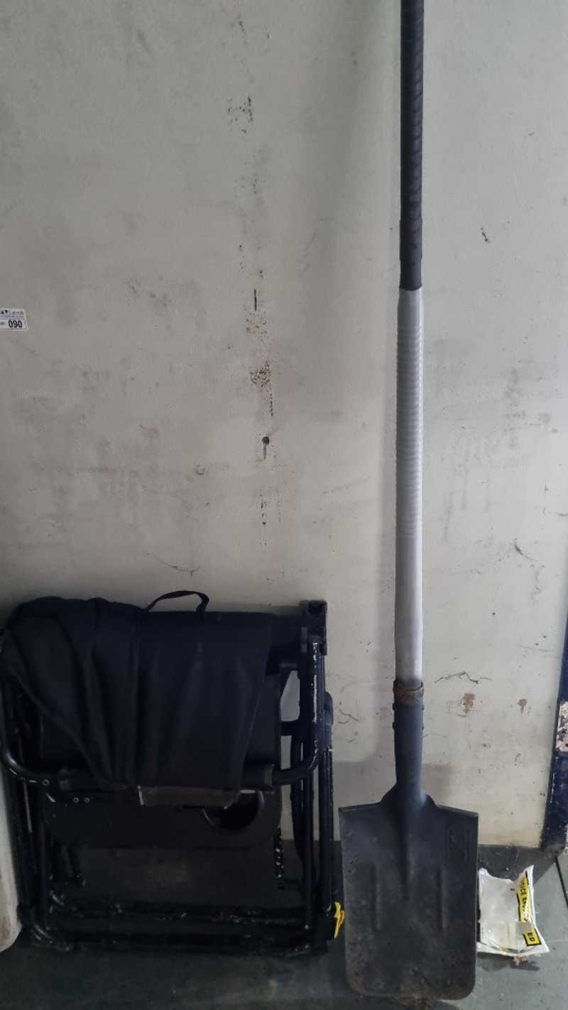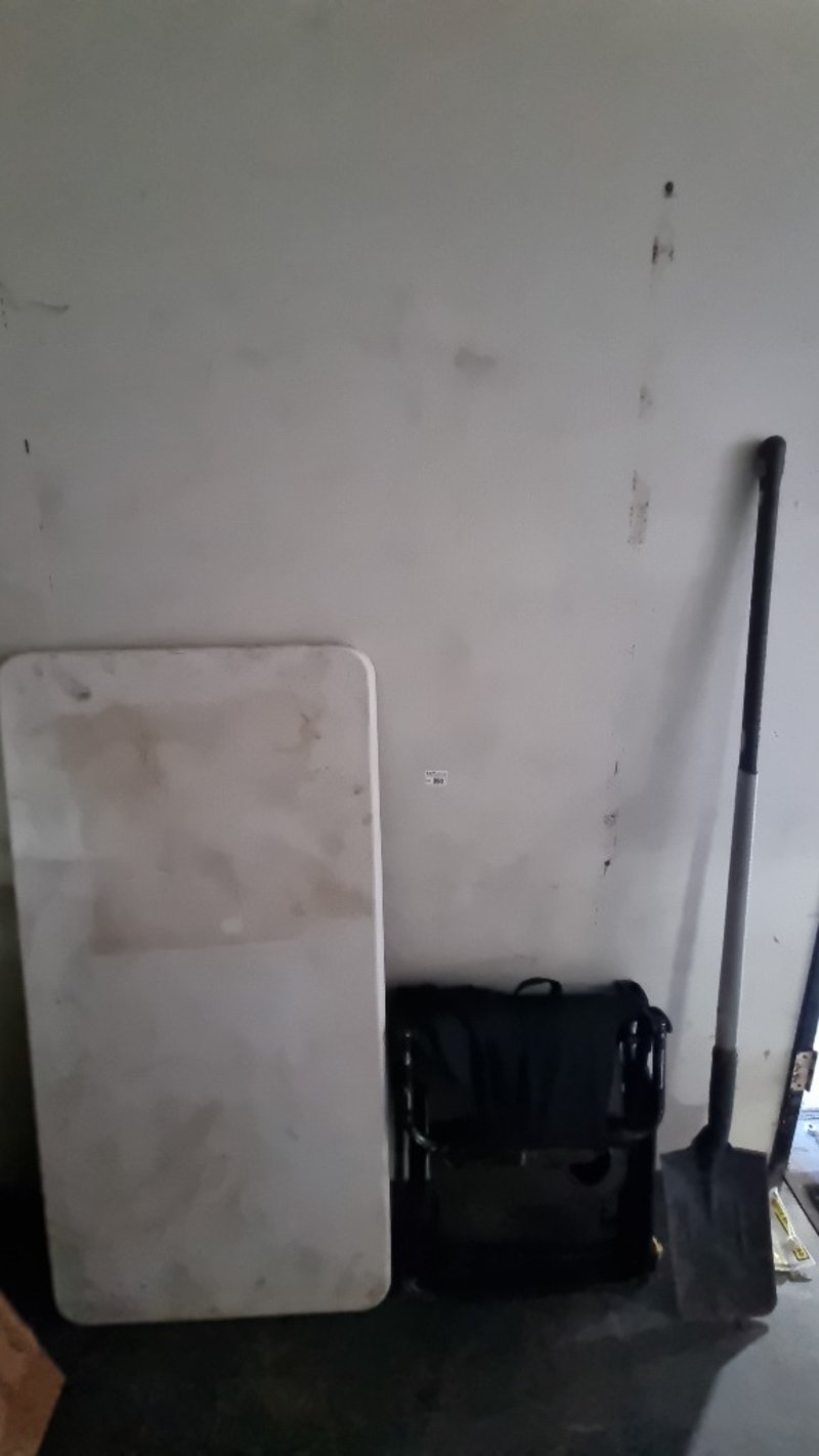 Fold Up table, camp Chair And Shovel, Sold as Lot