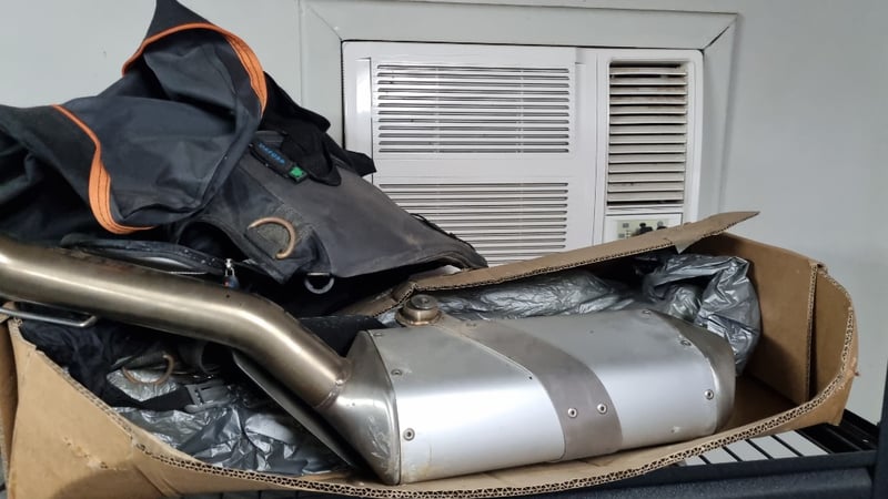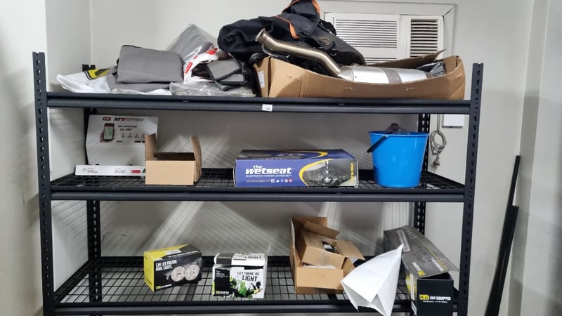Contents Of Shelves includes used Lights seat covers, Motorbike Exhaust