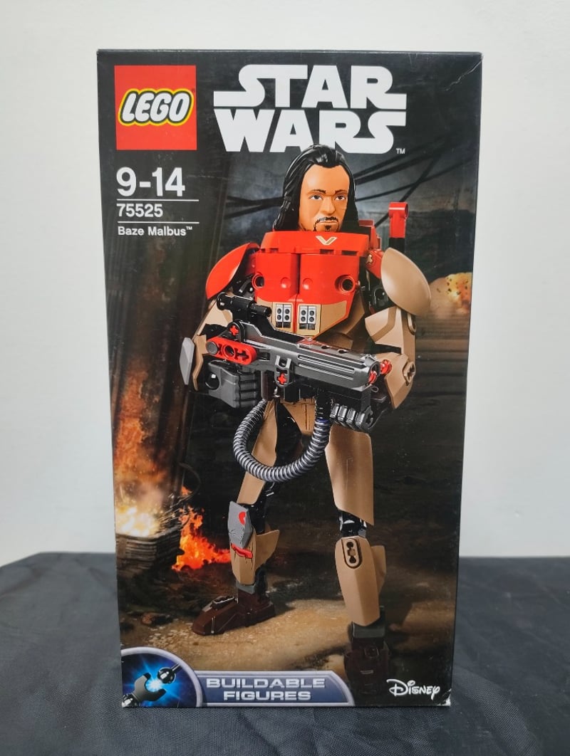Lego Star Wars Buildable Figure 75525 Baze Malbus, Featuring Articulated Red And Tan Torso Armour With Detachable Weapons Including Blaster Cannon And Hose Attachment. Includes Interchangeable Head And Alternate Smaller Figure Variant. Displayable Construction Set Designed For Ages 9-14.