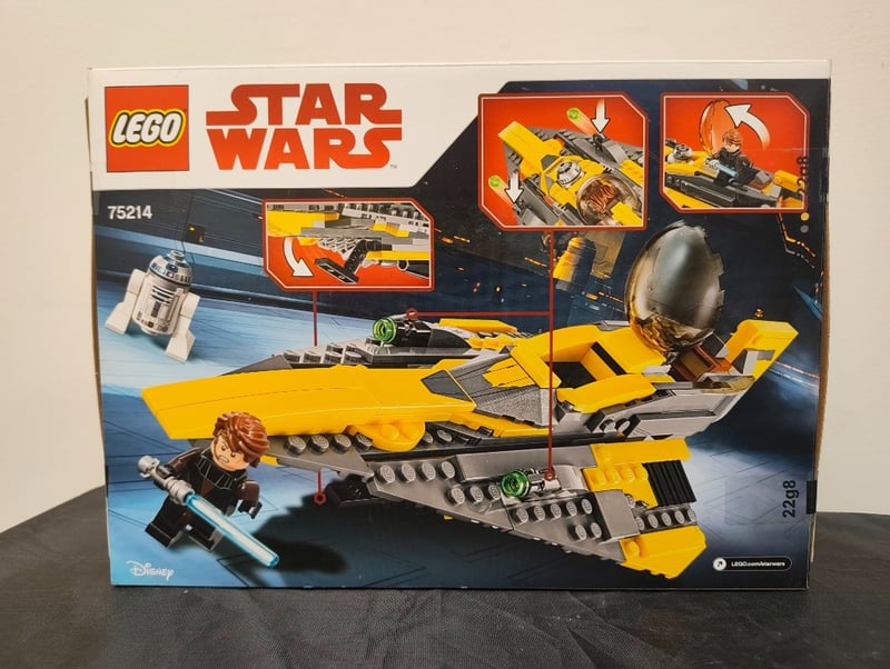 Lego Star Wars Set 75214 Featuring Anakin'S Iconic Yellow And Black Jedi Starfighter With Detailed Construction, Opening Cockpit, And Retractable Landing Gear. Includes