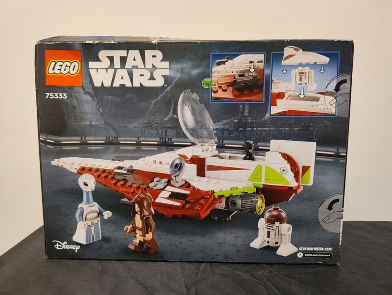 Lego Star Wars Set 75333 Featuring Obi-Wan Kenobi'S Iconic Red And White Jedi Starfighter With Opening Cockpit, Adjustable Wings, And Landing Gear. Includes Three