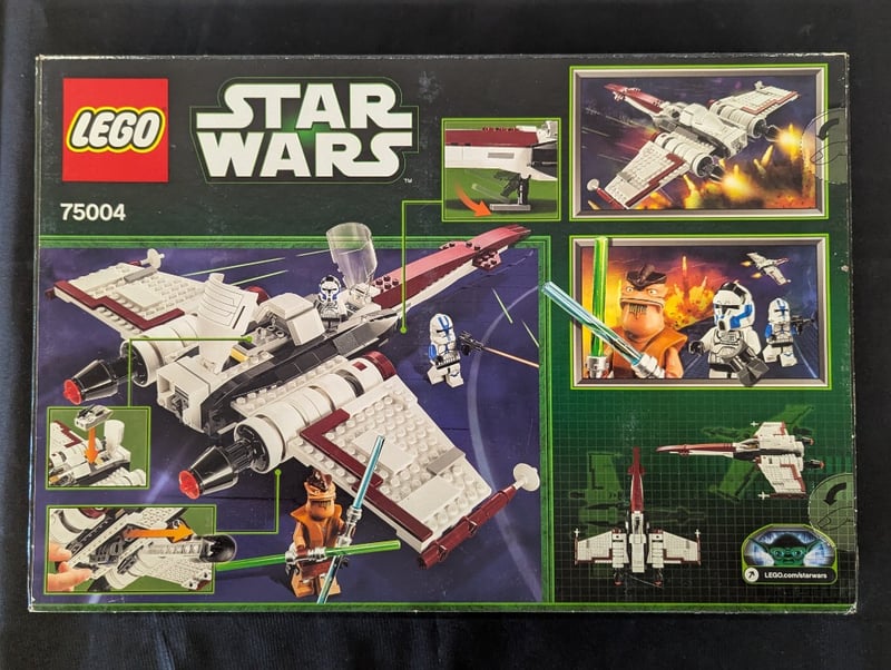 Lego Star Wars Set 75004 Featuring The Z-95 Headhunter Starfighter With Dual Rotating Engines, Cockpit Canopy, And Detachable Wing Sections. Includes Three