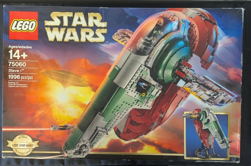 Lego Star Wars Set 75060 Slave I, Ultimate Collector Series Edition. Features 1996 Pieces With Detailed Construction Of Boba Fett'S Iconic Starship. Includes Minifigures And Extensive Building Instructions. Age 14+. Original Sealed Packaging With Vintage Box Art Showing The Distinctive Red And Green Spacecraft Design Against Fiery Background. Includes Detailed Interior Features And Moving Components As Per Original Specifications.