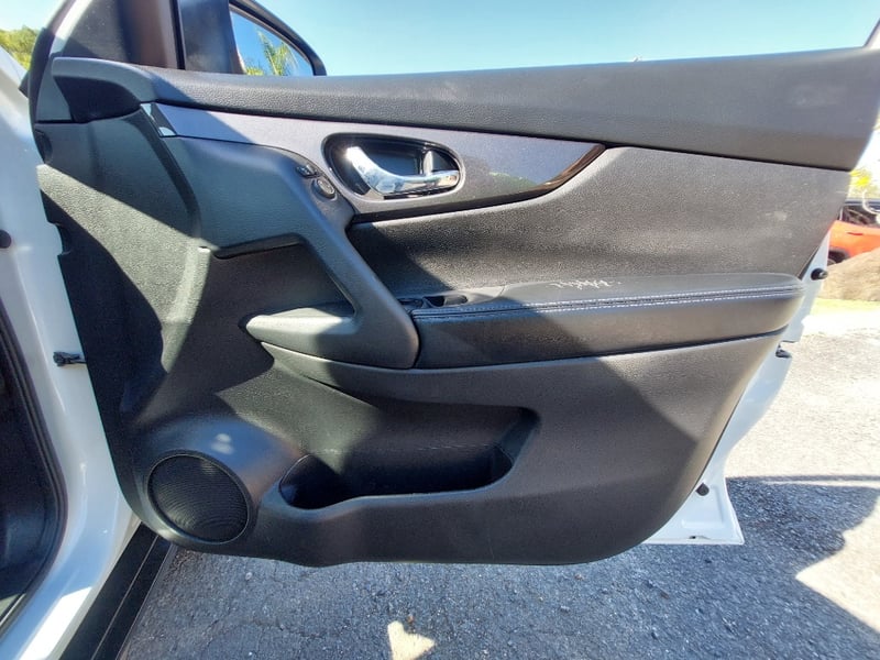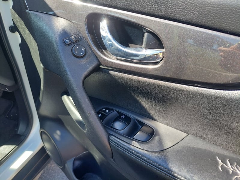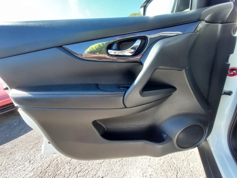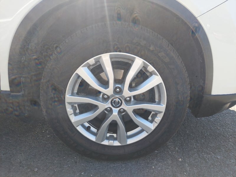 The 2.5-litre QR25DE four-cylinder petrol pairs with Nissan's X-tronic CVT for smooth, unfussy everyday driving. The ST specification includes a touchscreen infotainment system, Bluetooth connectivity, push-button ignition, alloy wheels, cruise control, and reverse camera. A dashcam is fitted to the windscreen. Side running boards provide easy entry and exit. Outside, the X-Trail presents in Ivory Pearl White (factory code QAB G). The vendor has documented specific condition items: light scratching to the lower front bumper, minor paint scoring on the driver's door and sill, minor scuffing to the door sill trim, a small dent to the rear quarter panel, and light surface scratches to the rear door panel. Buyers are encouraged to review the full 51-photo gallery which covers all damage areas in detail.